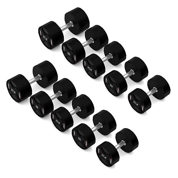 Литый полиуретан (CPU) обеспечивает исключительную стойкость к ударам, падениям и длительному интенсивному использованию. Гантели не теряют формы и функциональности даже при высоких нагрузках. CPU покрытие безопасно для пола, легко очищается и не имеет запаха, что делает эти гантели идеальным выбором для профессиональных спортзалов.