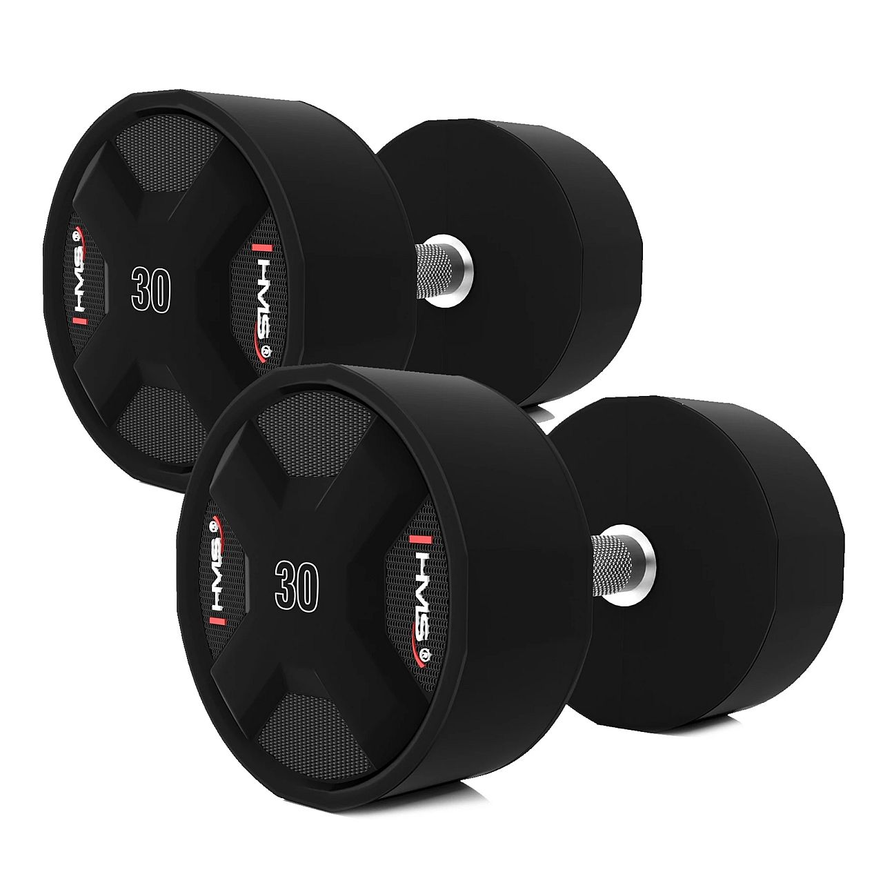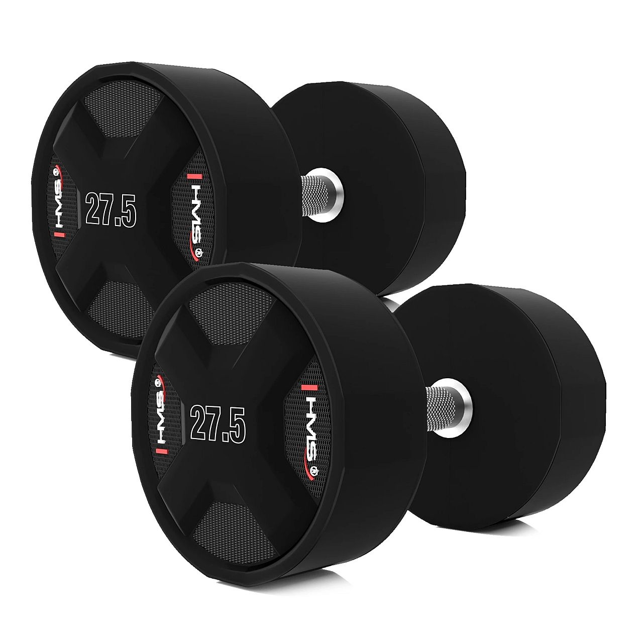 Гантельный ряд для спортзала 325 кг. HMS HPC SET (2×27.5-37.5 кг) — это набор профессиональных гантелей, предназначенных для интенсивного использования в спортзалах. Изготовленные из высококачественного литого полиуретана (CPU), эти гантели отличаются прочностью, современным дизайном и комфортом в использовании.