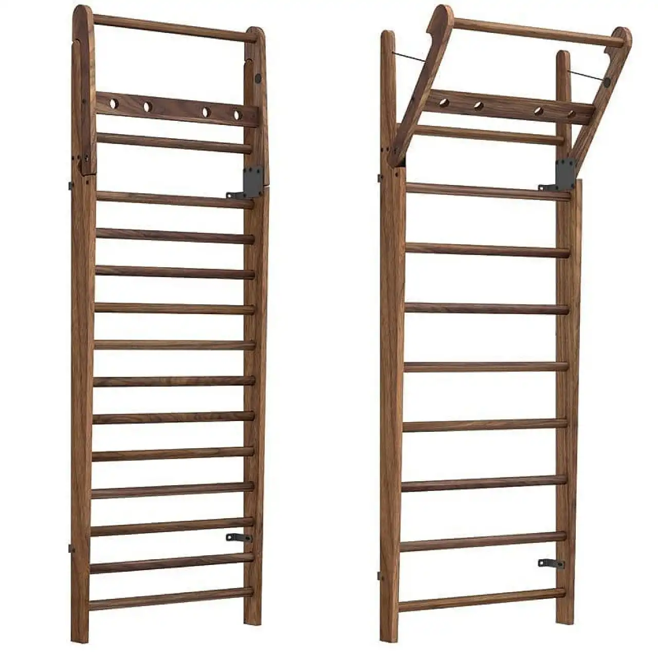 Шведская стенка со встроенной раскладывающейся перекладиной из ореха. 14 перекладинами.