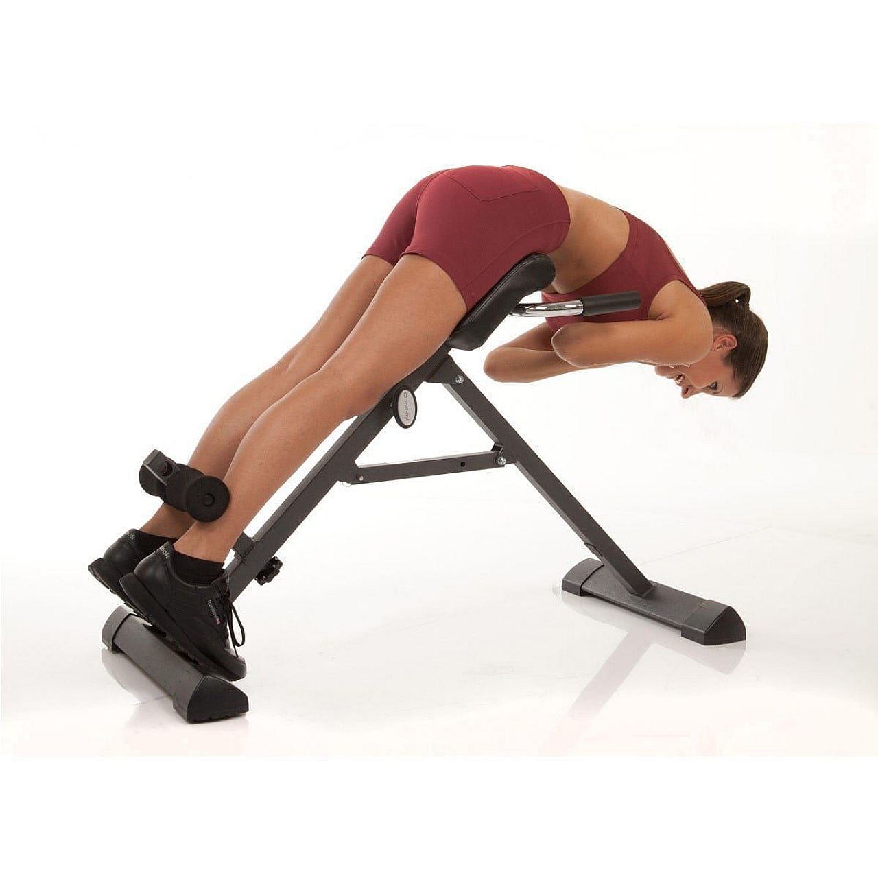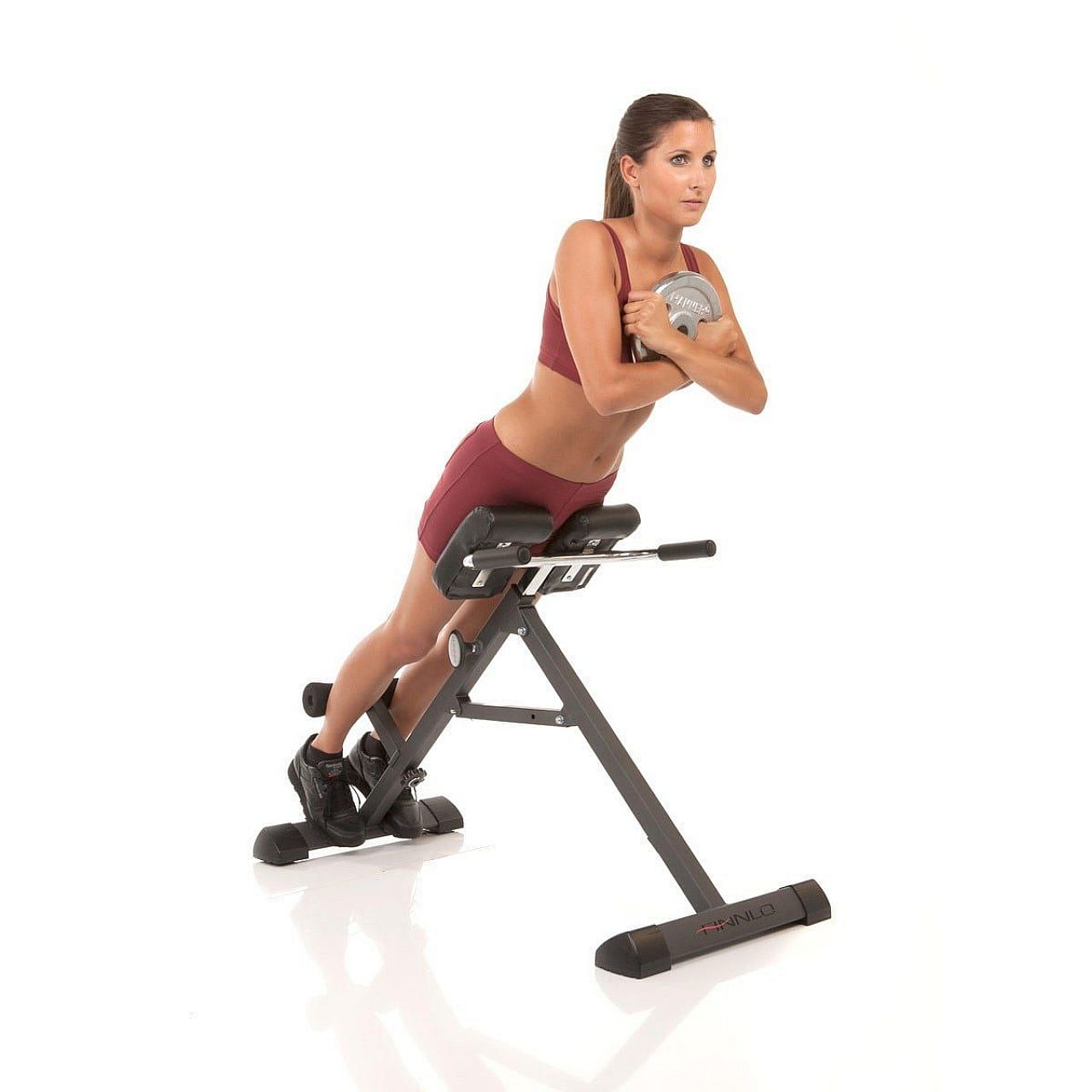 Гиперэкстензия TRICON марки FINNLO наконец-то приведет в форму мышцы спины и ягодиц и в среднесрочной перспективе уменьшит боли в спине, связанные с неправильной осанкой. 12 различных позиций для регулировки высоты подушки помогут подобрать подходящую для этого эргономичную позицию и не допустят сильного обратного разгибания в пояснице. Опорные ручки помогают спортсмену встать на тренажер и при выполнении упражнений. При помощи складного механизма тренажер TRICON можно легко убрать.