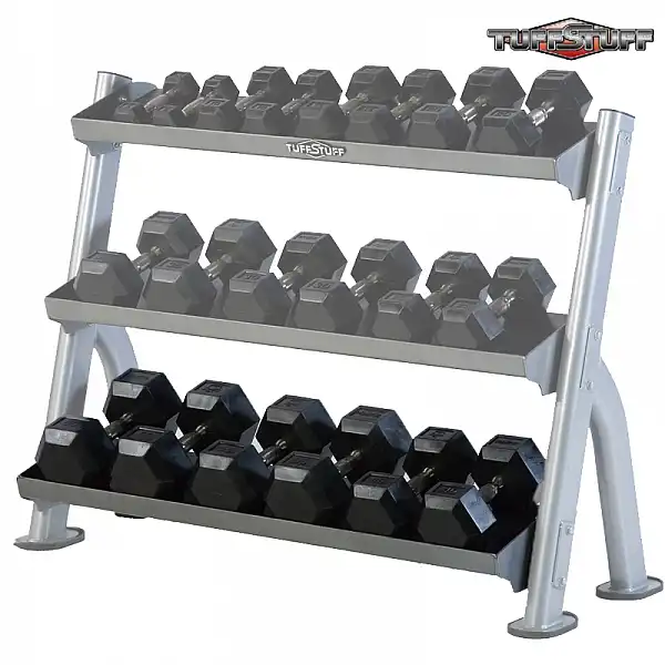 Стойка под гантели Tuff Stuff CDR-300E – это дополнительное пространство, на котором Вы можете хранить еще больше гантелей. С третьей полкой Вы сможете уместить весь набор гантелей!