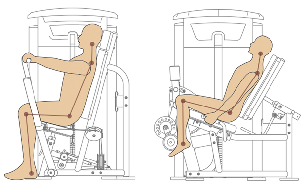 - Грузоблочная часть тренажеров имеет одинаковую высоту - 1530 мм. Единый дизайн и габариты позволяют сделать стильную и упорядоченную расстановку тренажеров в фитнес клубе.