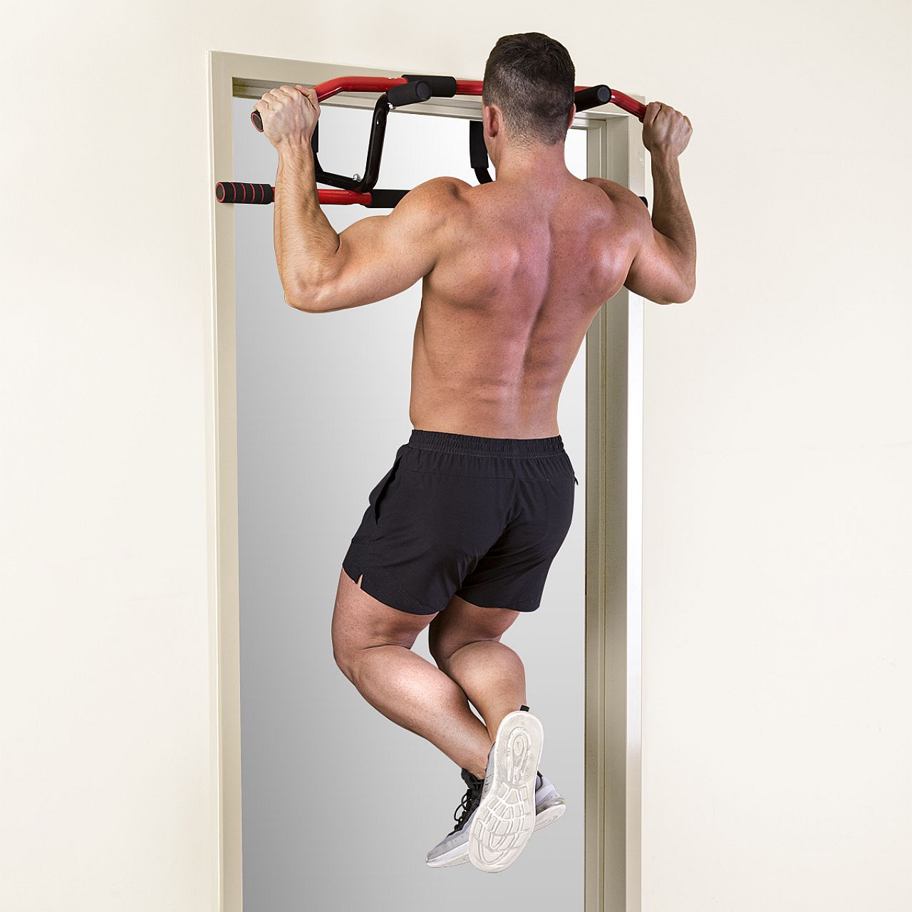 С его помощью мы будем делать упражнения для большинства верхних отделов мышц. Работает по принципу кредитного плеча. Просто зафиксируйте его между рамой и дверной коробкой. Пенопластовые ручки гарантируют удобство захвата и защищают от мозолей. Защиты на штанге предотвращают повреждение дверной коробки. DD12, предоставляет множество вариантов настройки хвата и возможность производить не только подтягивание. Благодаря дополнительным ручкам, напоминающим перила, можно выполнять провалы, а благодаря лямкам можно выполнять отжим или другие упражнения для груди. Основное предназначение DD12 – подтягивание. Подтягивание – это сложное, но очень укрепляющее упражнение. Во время движения мы задействуем мышцы предплечья, бицепсы, мышцы пресса как стабилизатор и, конечно же, всю группу мышц спины, включая широчайшую спину. Благодаря дополнительным ручкам мы будем делать упражнения для остальных мышечных частей верхней части тела. DD12 HMS Premium – отличное решение для домашних тренировок.