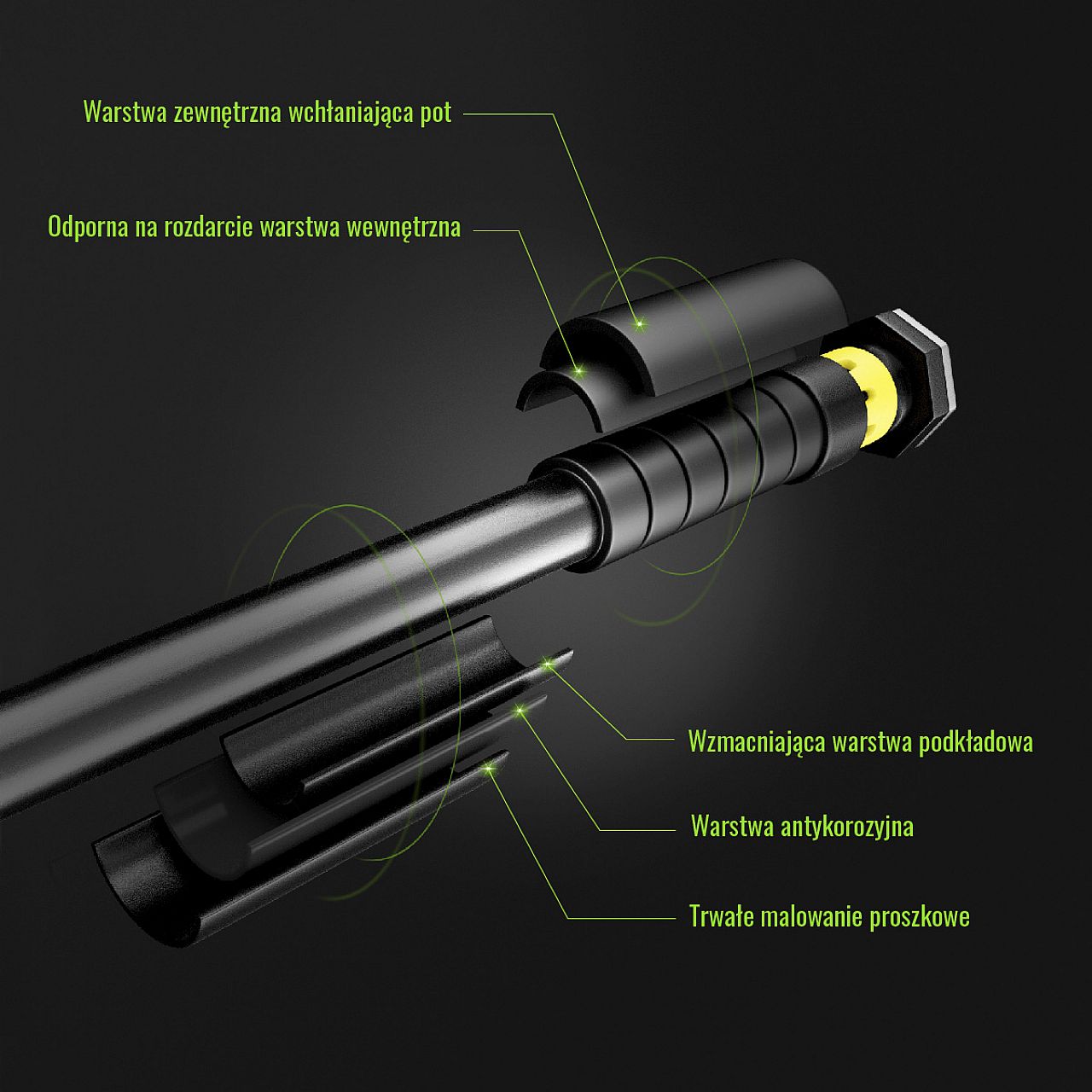 Планка имеет множество преимуществ, которые поддерживают обучение и обеспечивают безопасность. Твердые силиконовые накладки обеспечивают стабильное положение палки, а фиксатор предотвращает ее поворот. Ручки покрыты специальным материалом, который впитывает пот и предотвращает скольжение руки. Кроме того, изделие устойчиво к царапинам благодаря грунтовке, антикоррозионному слою и прочному порошковому покрытию.