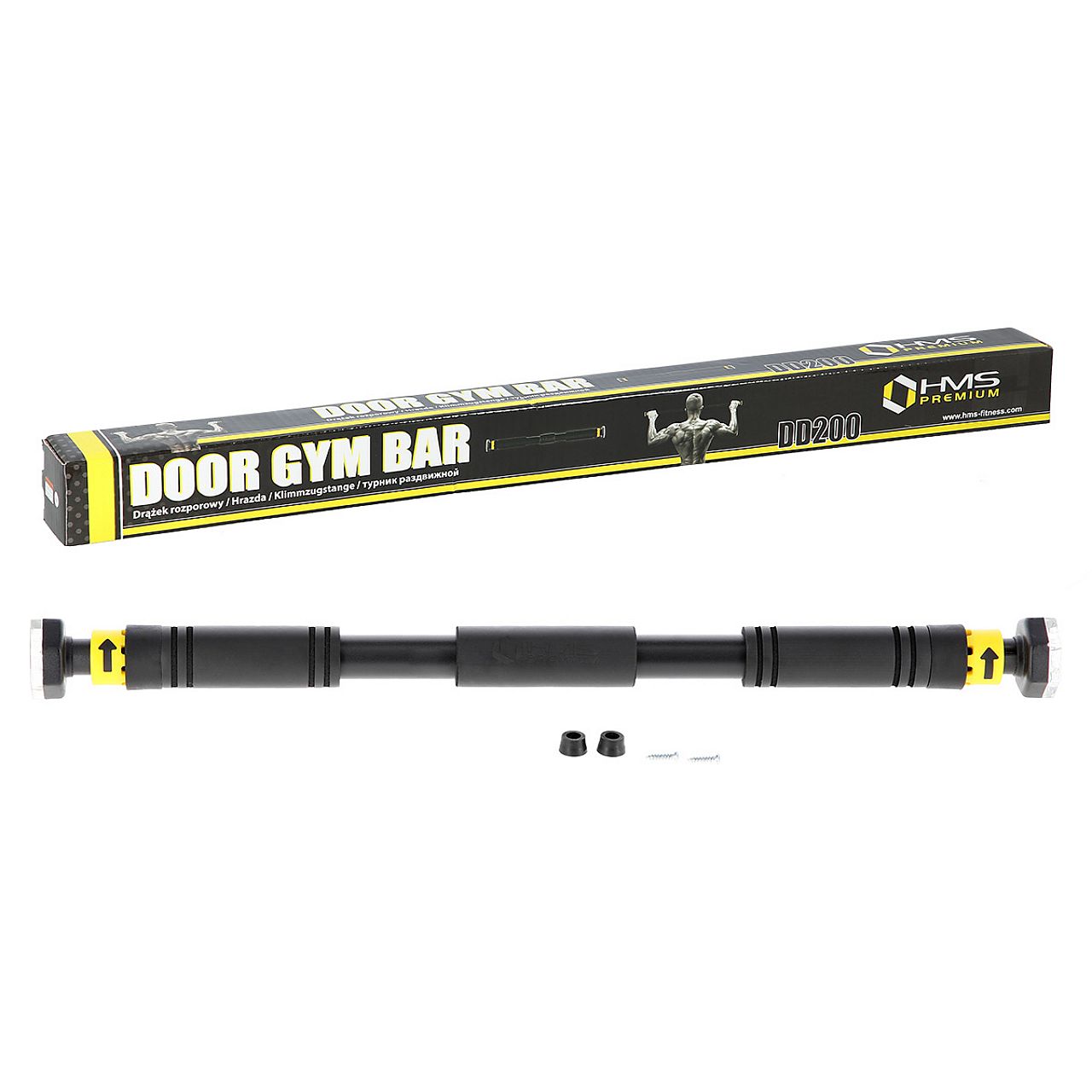 DD200 HMS PREMIUM – распорная планка из очень прочной стали. Продукт является идеальным решением, когда нет места для полноразмерного домашнего тренажерного зала. Большой диапазон регулировки длины в диапазоне 68 – 100 см позволит легко найти место для крепления штанги.