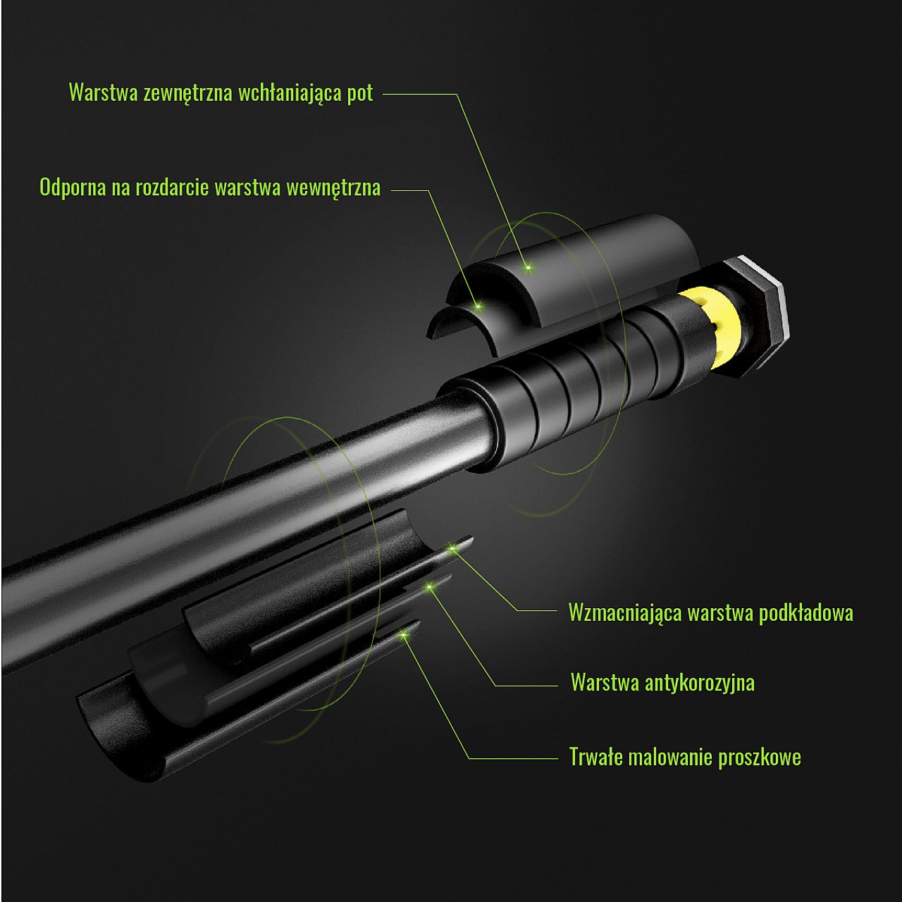 Продукт является идеальным решением, когда нет места для полноразмерного домашнего тренажерного зала. Большой диапазон регулировок длины в диапазоне: 90 – 130 см позволит легко найти место для установки штанги.
