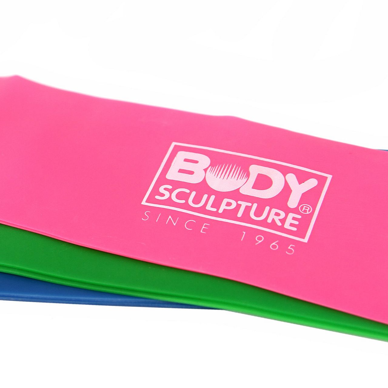 Набор из 3-х резинок BB 103 от Body Sculpture разной толщины и разного уровня прочности. Ленты в основном используются для тренировок для укрепления мышц ног и рук, хотя их можно использовать в упражнениях на растяжку. Ленты имеют форму замкнутой петли, их легко надеть на ноги или руки.