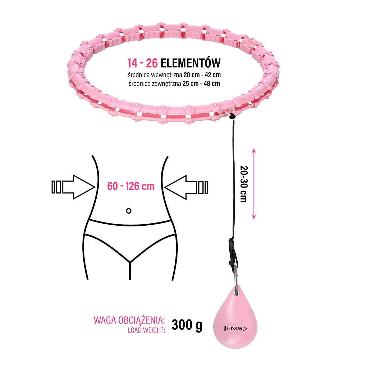 HHW11 HMS – регулируемый хулахуп с гравитационным мячом для фитнеса. Это позволяет одновременно проводить тренировку и массаж талии на 360 градусов. Он отлично подходит для укрепления и упрочнения мышечного корсета, в том числе. Благодаря регулируемой окружности HHW11 никогда не упадет во время тренировки, поэтому домашняя кардиотренировка может быть длинной и приятной. HHW11 – это продукт, разработанный для людей больших размеров, желающих улучшить свою физическую форму и фигуру.