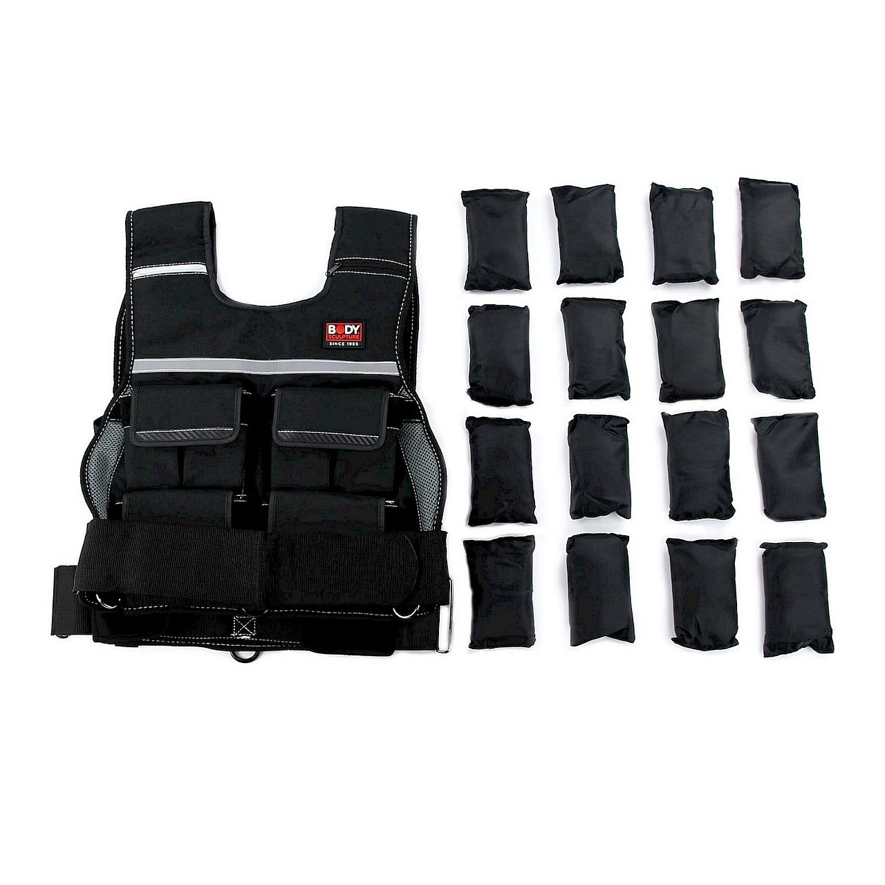 Kamizelka treningowa BB 966 marki Body Sculpture została zaprojektowana tak, że możesz samodzielnie decydować o jej ciężarze. Indywidualne dobranie obciążenia jest możliwe dzięki szesnastu specjalnym, miękkim woreczkom wagowym o masie 600 g każdy. Kamizelka wykonana z wytrzymałego materiału odpornego na pot, dzięki czemu gwarantuje maksimum komfortu i użyteczności. Dzięki regulowanym zapięciom dobrze dopasowuje się niemal do każdej sylwetki zapewniając wygodę i swobodę ruchów podczas treningów.