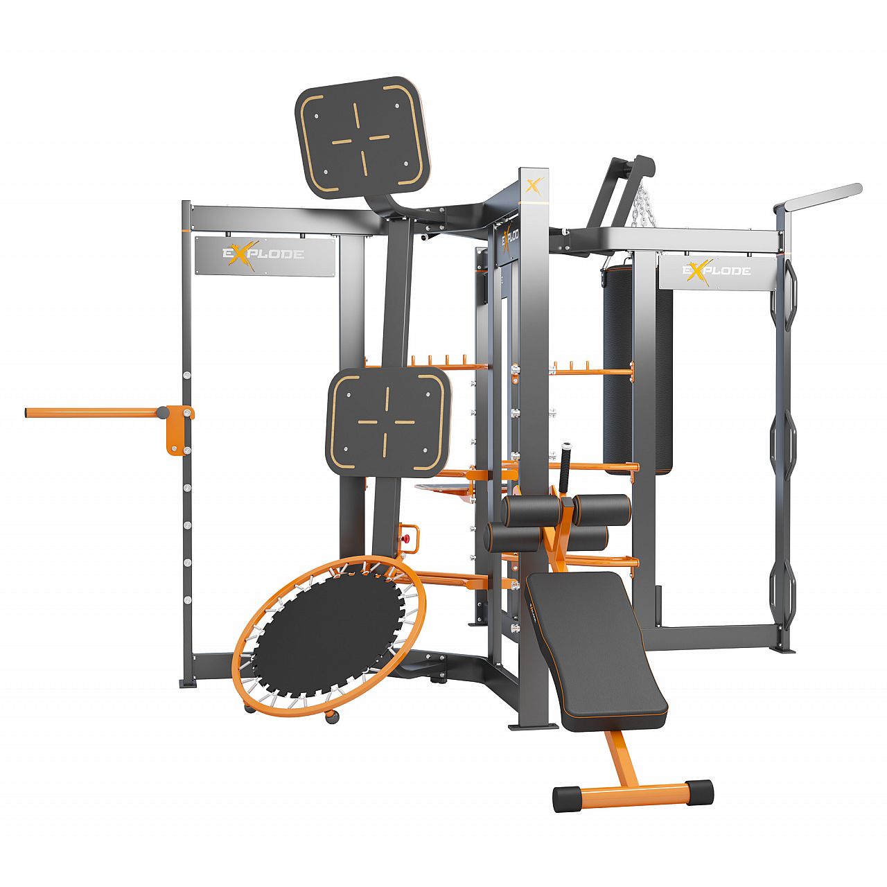 Мультистанция для функционального тренинга Explode KF-S7 — универсальный высокопроизводительный спортивный тренажер, предназначенный для развития силы, скорости, гибкости и координации. Эта динамичная станция охватывает все аспекты функциональной тренировки: от подтягиваний до боксерских упражнений.