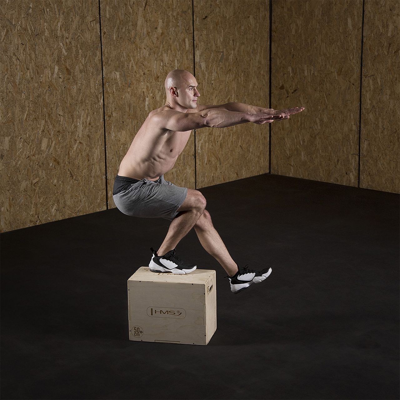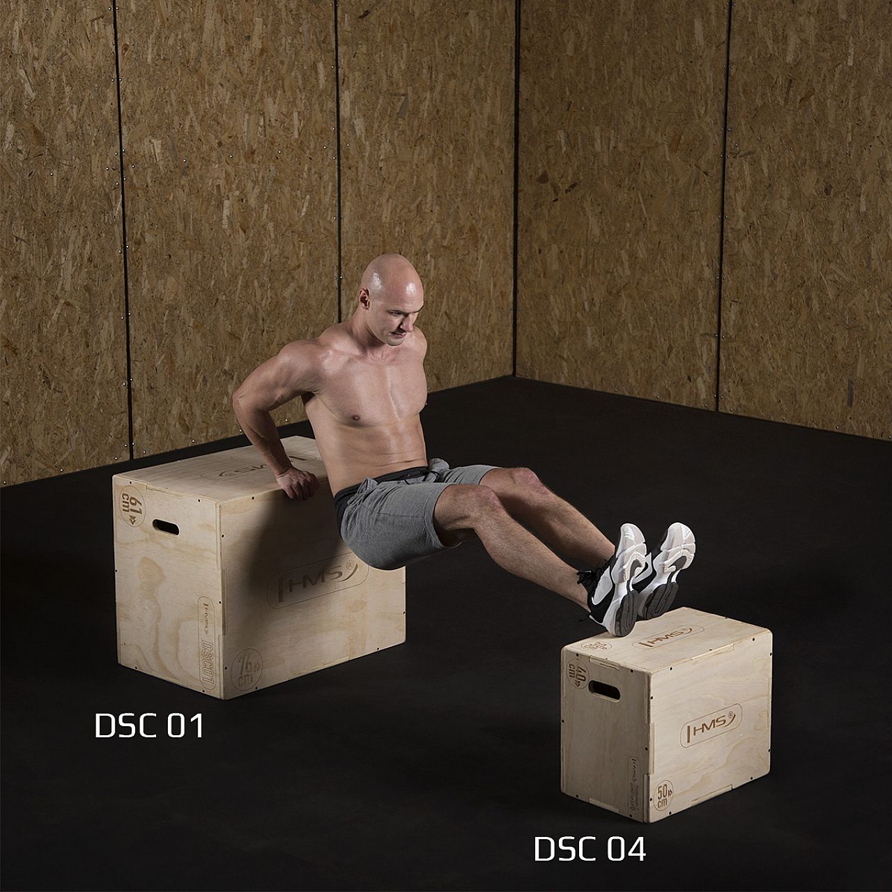 DSC04 HMS – это деревянная коробка, предназначенная для кросс-тренировок. Возвращая ящик разными сторонами, мы можем получить три высоты и подстроить их под уровень продвижения тренируемого человека.