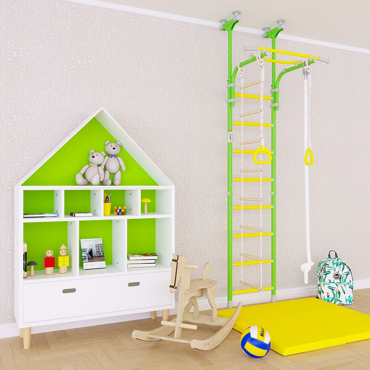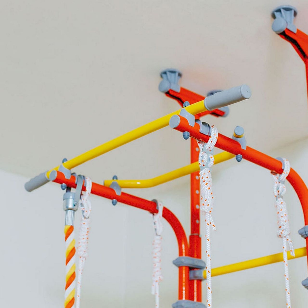 Wielofunkcyjny zestaw do zabawy, wspinaczki i ćwiczeń fizycznych Wallbarz Family 4D to nowoczesny kompleks sportowy, zaprojektowany з myślą o różnorodnej aktywności dziecka, але także dorosłych. To doskonały i skuteczny sposób, щоб skłonić dziecko do aktywności fizycznej w trakcie przebywania w domu. WALLBARZ Family 4D wyposażony jest w regulowany drążek, którego wysokość można zmieniać w miarę dorastania dziecka. Dzięki temu ćwiczenia są bardziej komfortowe, dopasowane do wieku i rozwoju dziecka, a тим samym bezpieczne. Dużym atutem tego zestawu є те, що він не займе на wiele miejsca w pomieszczeniu, тим самим може go zamontować w prawie każdym mieszkaniu. Zestaw przymocowany jest do podłogi i twardego sufitu, так więc nie wymaga wiercenia iw każdym momencie można go przenieść w dowolne miejsce.