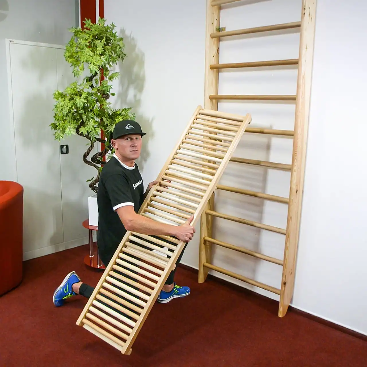 Скринька - відмінний універсальний інструмент для вправ; однак їх універсальність можна розширити за допомогою різноманітних аксесуарів . Наприклад, за допомогою додаткової перекладини для підтягування ви зможете тренувати м'язи спини та решту верхньої частини тіла. З іншого боку, бруси допомагають тренувати трицепси та м'язи грудей. Виконуючи віджимання та підтягування, ви обов'язково оціните одну з наших стрічок опору. Вони забезпечують опір та знижують вагу, з якою ви працюєте, і, таким чином, дозволяють навіть новачкам справлятися з цими складними вправами. Але якщо ви вважаєте ці вправи надто легкими, ви можете спробувати працювати з власною вагою. Ще один популярний аксесуар - підвісна система. Його можна легко прикріпити до однієї з поперечок, і ви знайдете безліч варіантів тренувань із власною вагою. Ви також можете прикріпити поперечини, які працюють з опором та підходять всім завдяки своїй універсальності. І останнє, але не менш важливе: ви напевно оціните лавку для шведської стінки, придатну для стрибків, присідань, вправ з гантелями і т. д. Купуйте один із цих аксесуарів і використовуйте шведську стінку повною мірою.