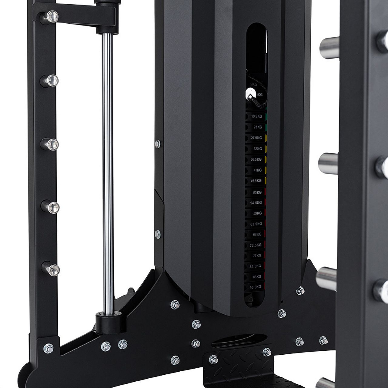 Кожна стійка призначена в основному для тренувань зі штангою . Завдяки направляючим штангам з високоякісними підшипниками кожне тренування з олімпійською штангою стане незабутнім досвідом без ризику отримати травму. Ви також можете займатися без напрямних, не втрачаючи безпеки - про це подбають дві пари стопорів безпеки (які можна розмістити в будь-якому місці рами).