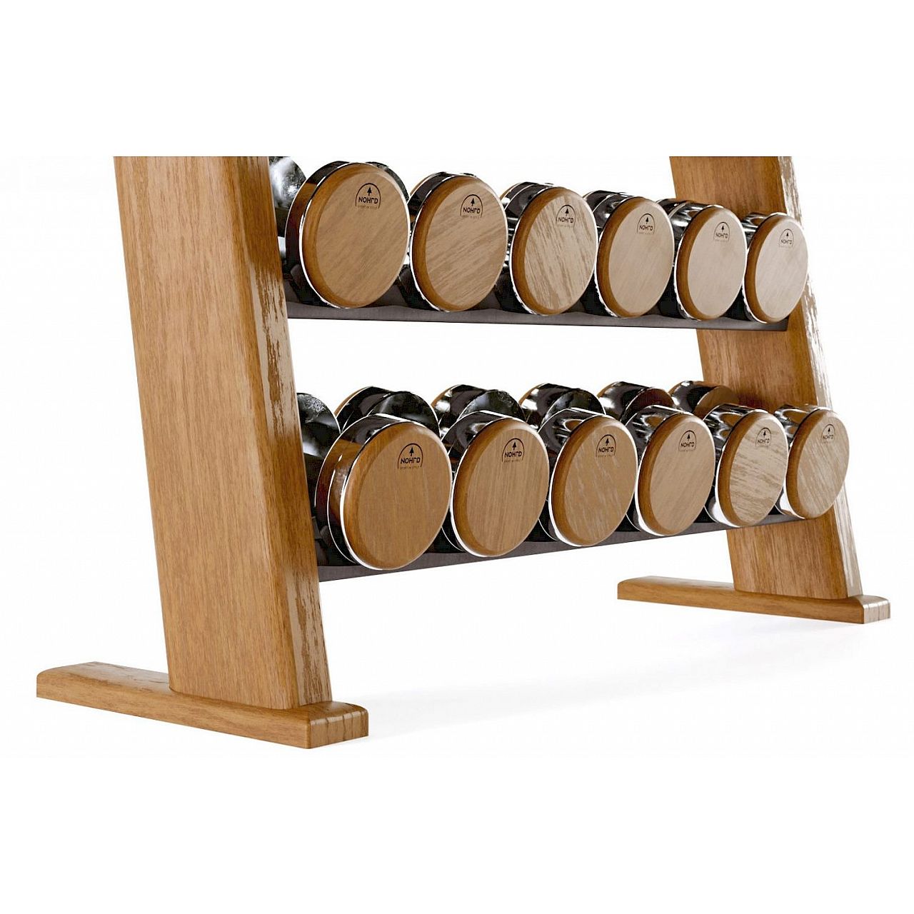 При виробництві гантелей NOHRD велику увагу було приділено зовнішньому вигляду всіх гантелей. Вони були оброблені на верстатах з ЧПУ з використанням нікельованої сталі разом з дерев'яними декоративними дисками. Це дійсно благородний дизайн, який занурює кожного користувача в королівську атмосферу. Відчуйте себе справжнім господарем свого тіла і сформуйте всі м'язи з гантелями NOHRD.