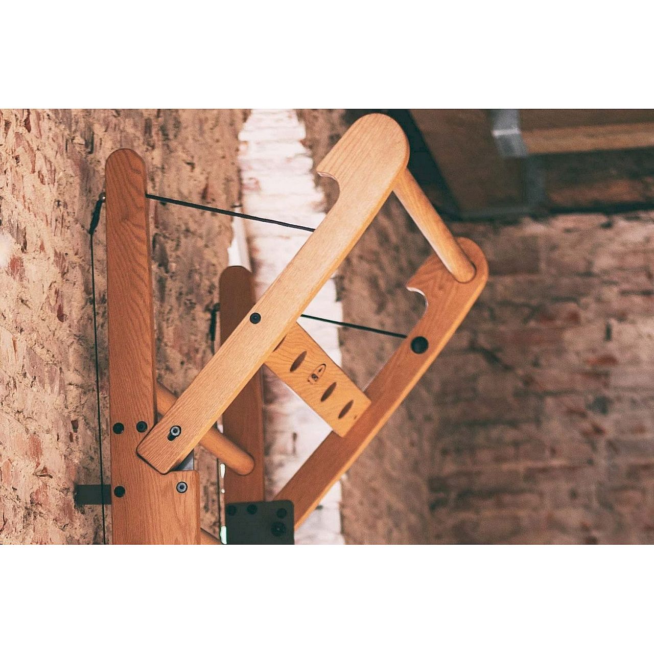 Гімнастична стремянка NOHrD Wallbars виготовлена з високоякісної деревини. Драбини можна придбати у двох варіантах: 10-ступінчаста з кроком 17,7 см та 14-сходина з кроком 9,9 см.