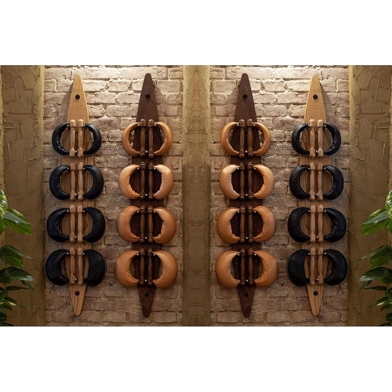 Гантель SwingBell виготовлена з масиву дерева і вміщує вісім гантелей, повний комплект. 4 пари шкіряних гантелей підвішені на кронштейнах з високоякісної нержавіючої сталі. Ручки гантелей також виготовлені з масиву дерева