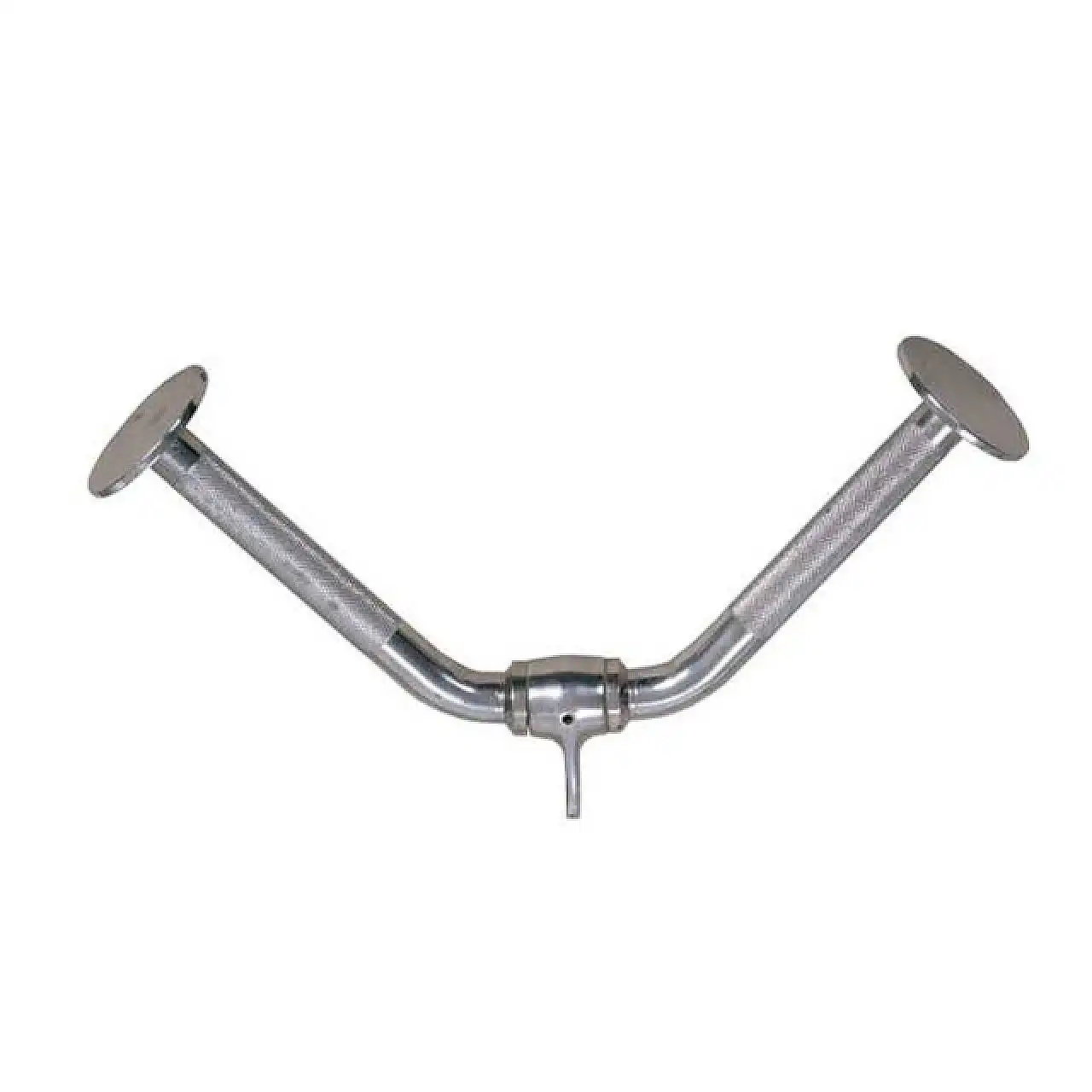 Ручка для тяги знизу InterAtletika D4-08 (трицепс), що обертається застосовується не тільки під час силових занять, але також і для фізкультури, або аеробіки. Конструкція має вигнуту форму. Для надійного і міцного хвата на ручках є насічки. Це забезпечить зручну і комфортну тренування. В якості основи для конструкції використана високоякісна сталь. Є покриття проти іржі.