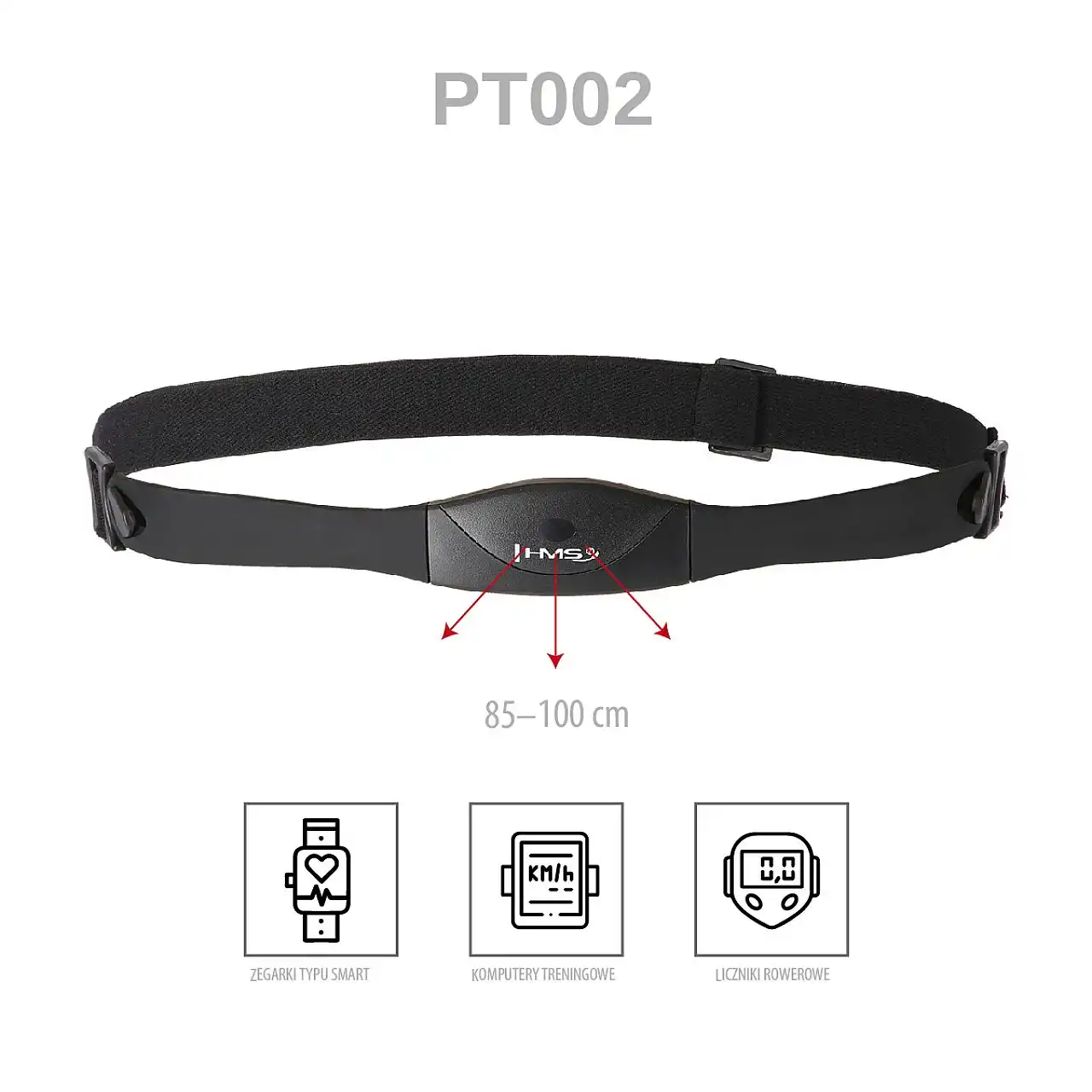 Досягнення цілей тренування значною мірою залежить від рівня, на якому буде підтримуватися наш пульс. Незалежно від виду спорту, яким ви займаєтеся, важливо контролювати цей рівень. З телеметричним ременем PT002 HMS стане можливим моніторинг серцевого ритму, і завдяки цьому тренування стане більш ефективним. Вимірювання проводиться безпосередньо біля грудей, завдяки чому воно набагато точніше, ніж у випадку з мобільними пристроями або датчиками, вбудованими в тренажери. Довжина ременя регулюється, тому кожен зможе легко підігнати його під своє тіло.