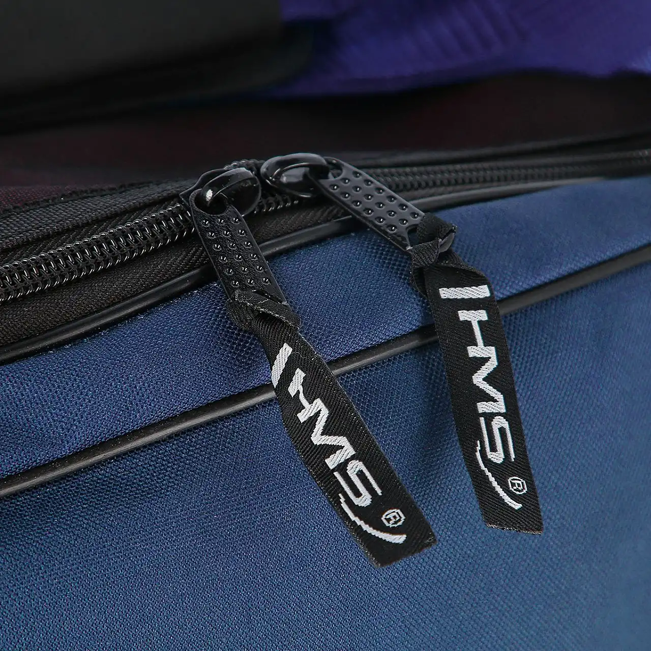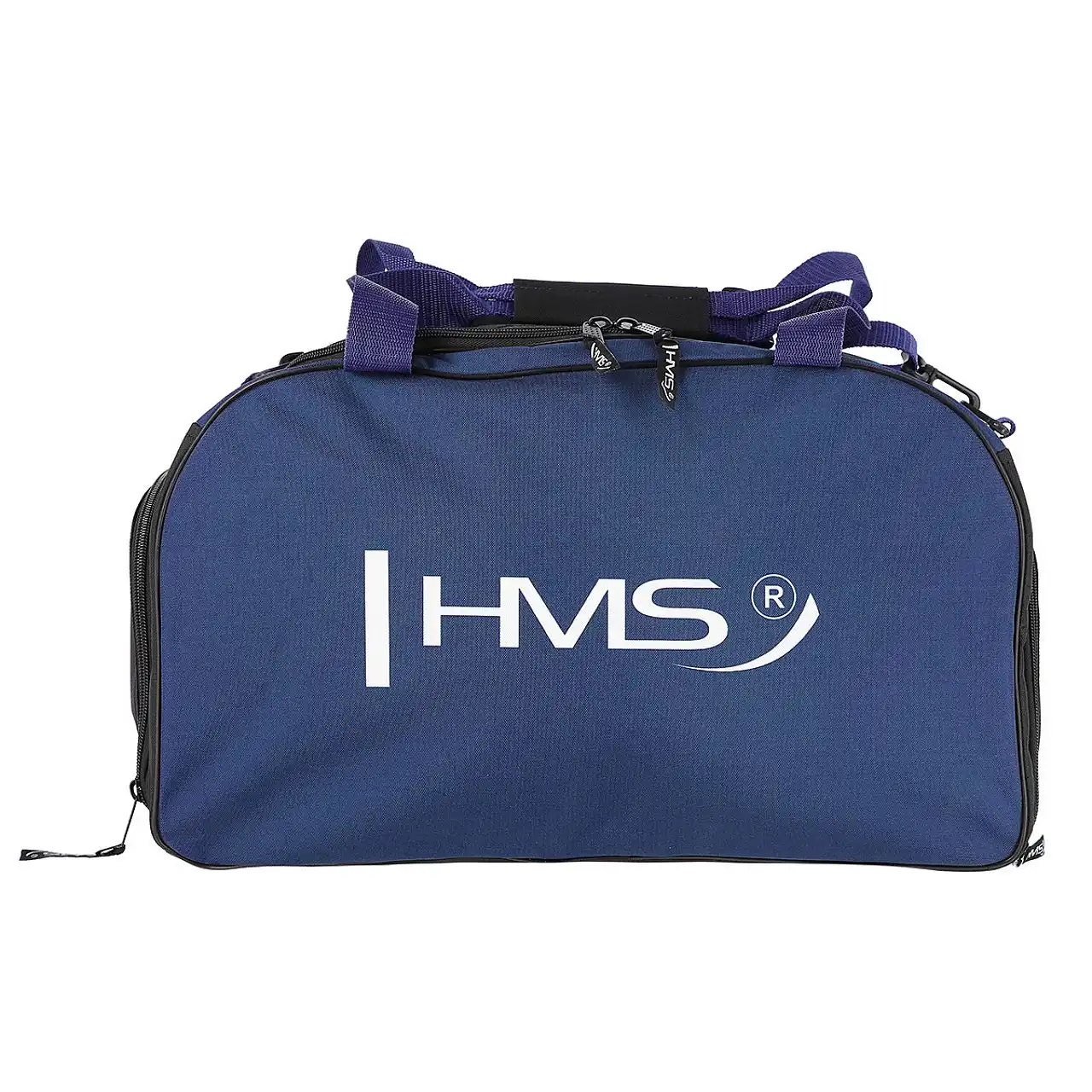 TRS3609 HMS - ергономічна спортивна сумка. Виготовлена з 100% поліестеру, високоякісного, зносостійкого синтетичного матеріалу. У ньому розмістяться всі необхідні аксесуари для навчання. Дві бічні кишені полегшують організацію. Сумку зручно носити завдяки ідеально підігнаним верхнім ручкам і ремінцю, що дозволяє носити сумку на плечі. Ремінець регулюється і при необхідності повністю від'єднується від сумки. Всі кишені закриваються на блискавку.