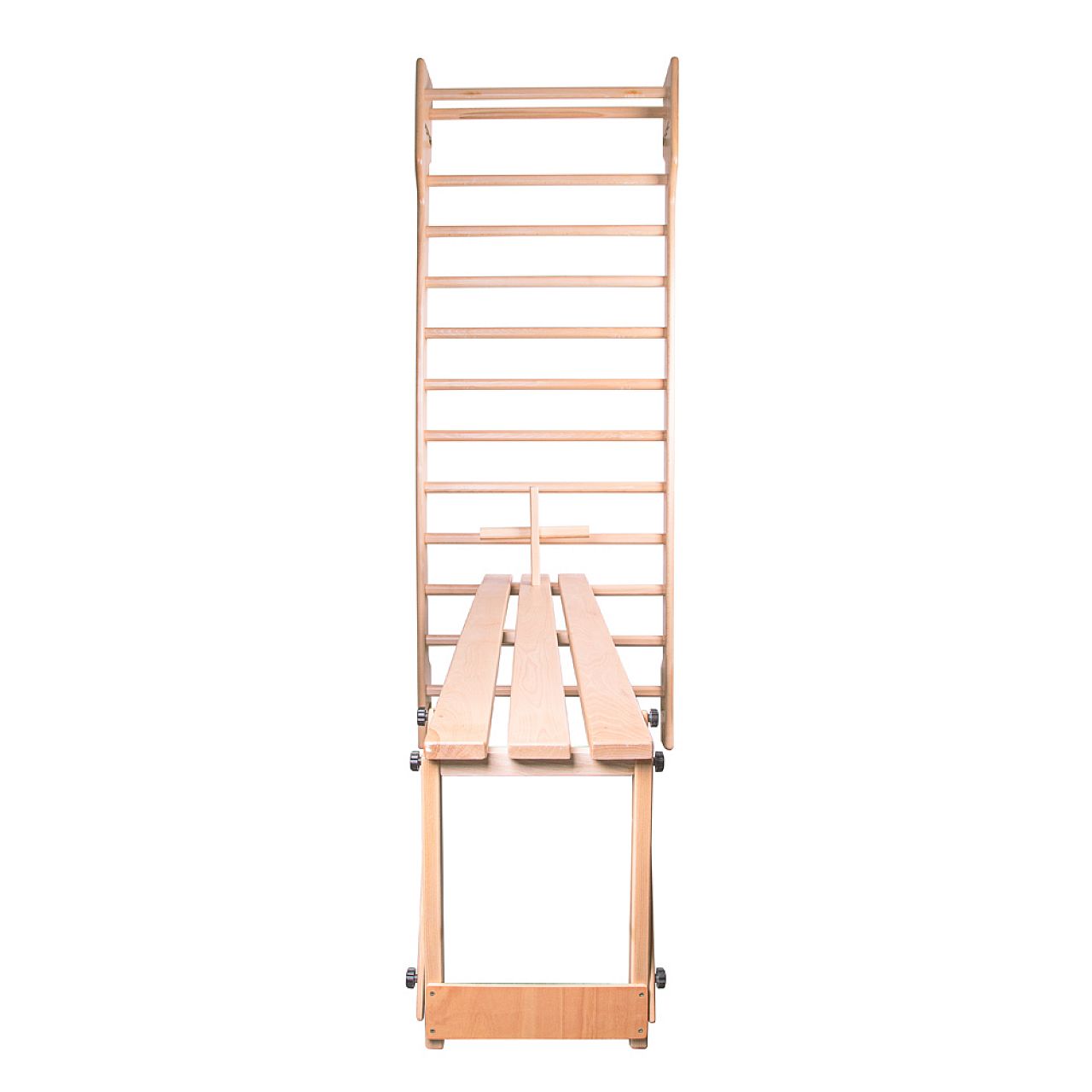 Лава для стінок inSPORTline Steadyline — це чудове кріплення, яке підходить для будь-яких стінок шириною не менше 40 сантиметрів . Лавка виготовлена з високоякісної деревини бука, яка є гнучкою, але міцною. Він складається з трьох частин. Частина, на якій ви сидите/лежите під час виконання вправ, складається з трьох дощок довжиною 200 сантиметрів . Потім є опорна ніжка, яка використовується для регулювання висоти лавки. Ви також можете скласти опорну ногу вниз, створюючи другу позицію, коли лава спирається на підлогу. Третя частина - це насадка для ніг з поролоновою підкладкою, яка використовується для присідань (можна регулювати в двох положеннях).