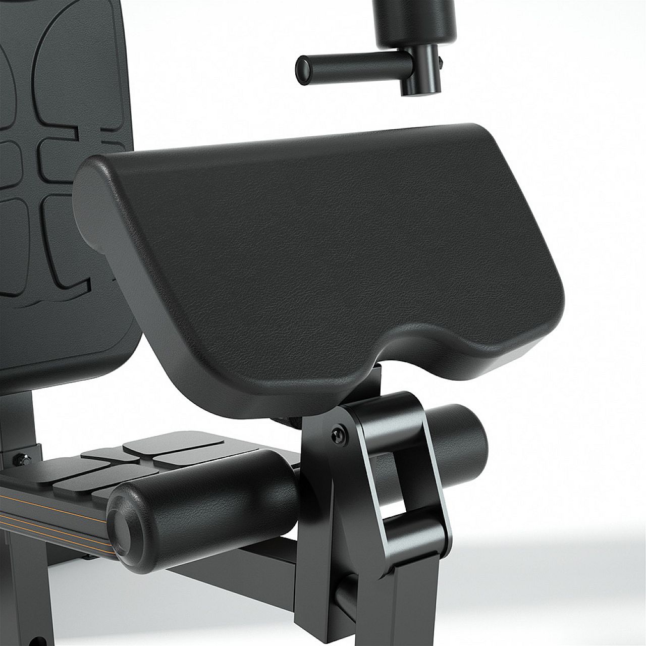 Тренажер також має м'яке сидіння, яке дозволяє виконувати жими сидячи та батерфляй . Крім того, є регульована накладка для згинання біцепса , яка дозволяє зосередитися на тонізуванні ваших біцепсів. Підтримку спини можна регулювати в 6 різних положеннях , що дозволяє знайти оптимальне положення для тренування. Тренажер також пропонує як верхній, так і нижній шківи , гребну рукоятку та подовжувач для підйому ніг і згинання відповідно.