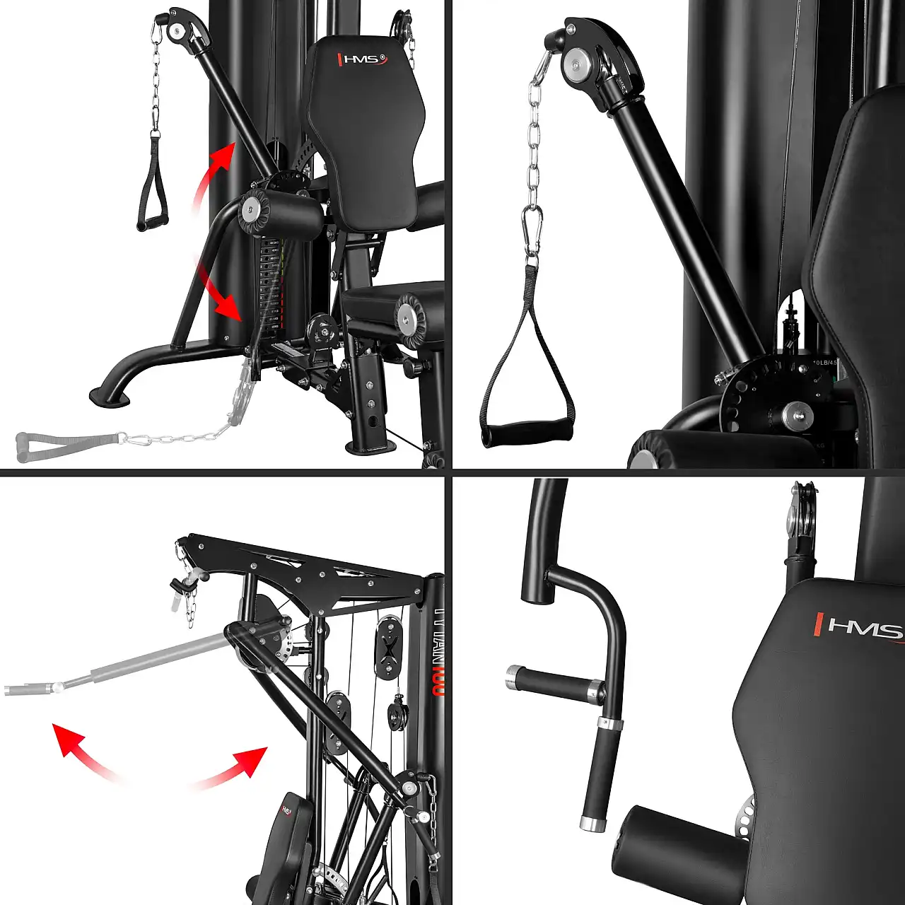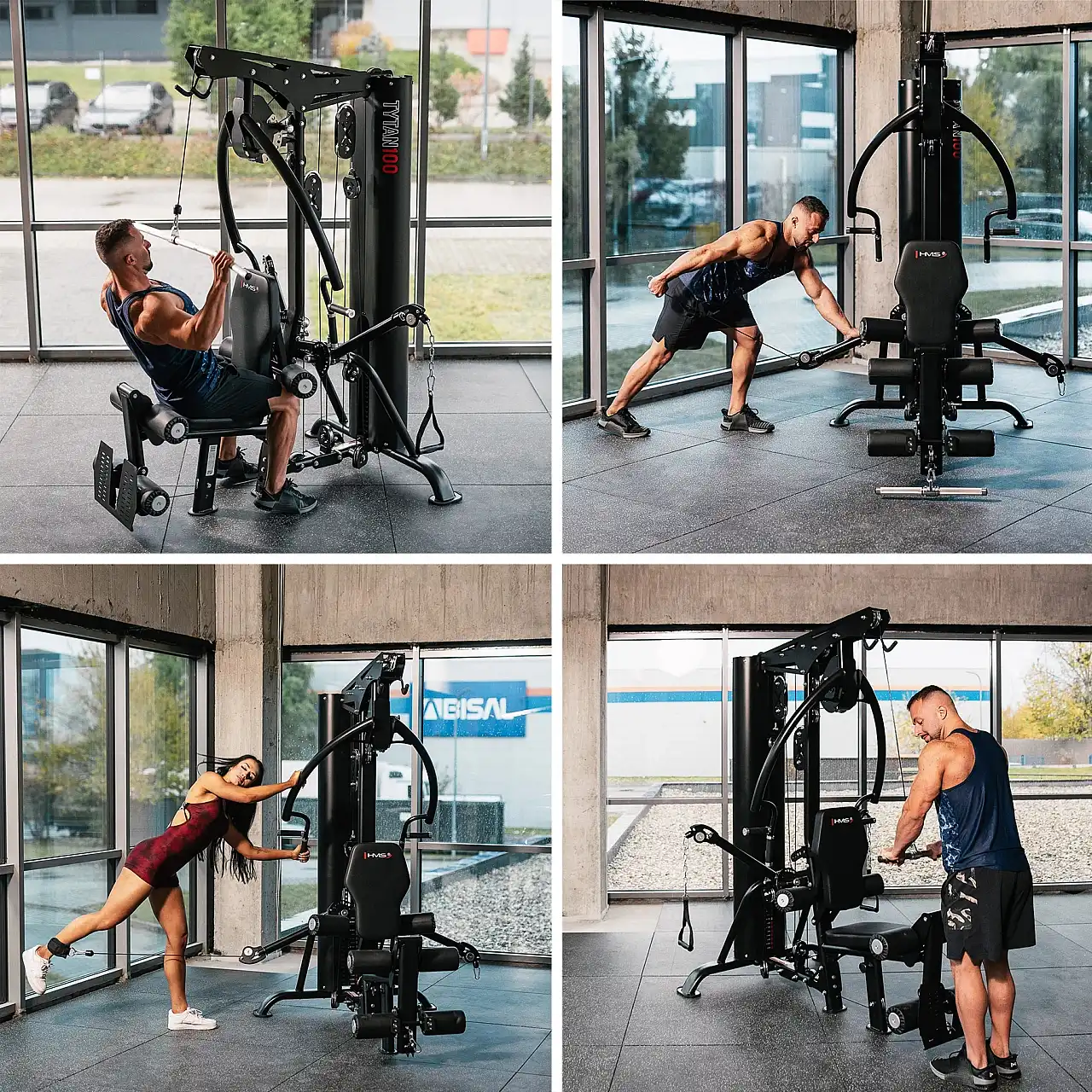 TYTAN 100 HMS – це повністю комерційний мультитренажер, призначений для інтенсивного використання в клубах, готелях та зонах персональних тренувань. Стек 90 кг зі співвідношенням тросів 1:1 забезпечує реалістичний опір, а широкі можливості регулювання дозволяють ідеально підлаштуватися під статуру користувача.
