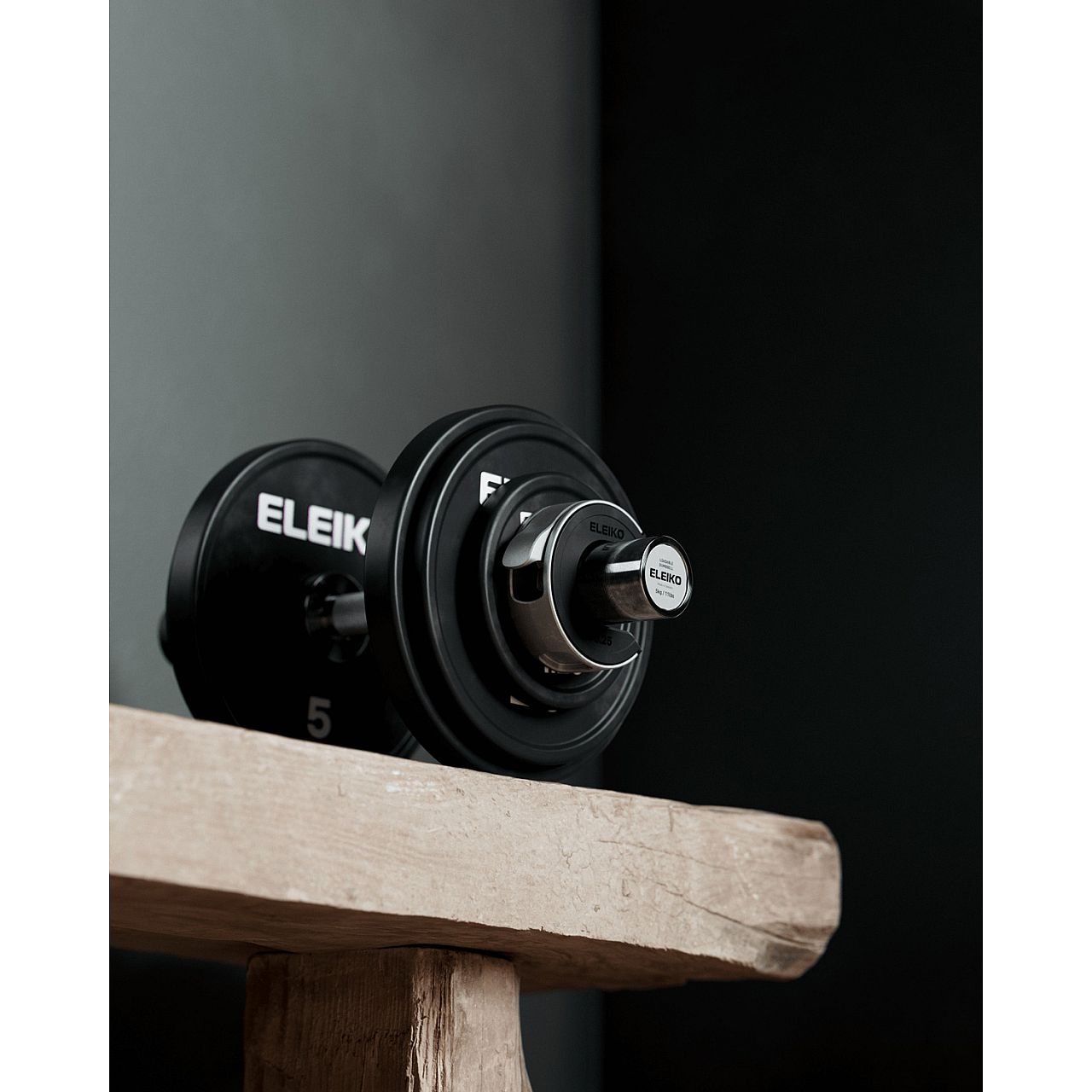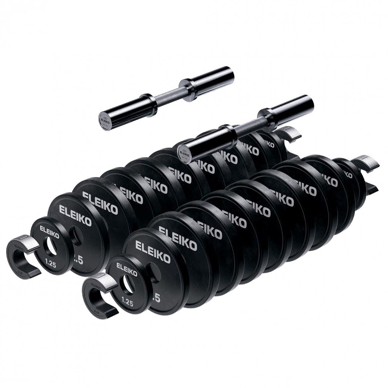У комплект входить 2 грифи з обертанням, 4 фірмові замки Eleiko Öppen нового покоління, та вагові гумові диски для зміни діапазону навантаження, які нададуть вам гнучкість у виборі правильних тренувальних навантажень.