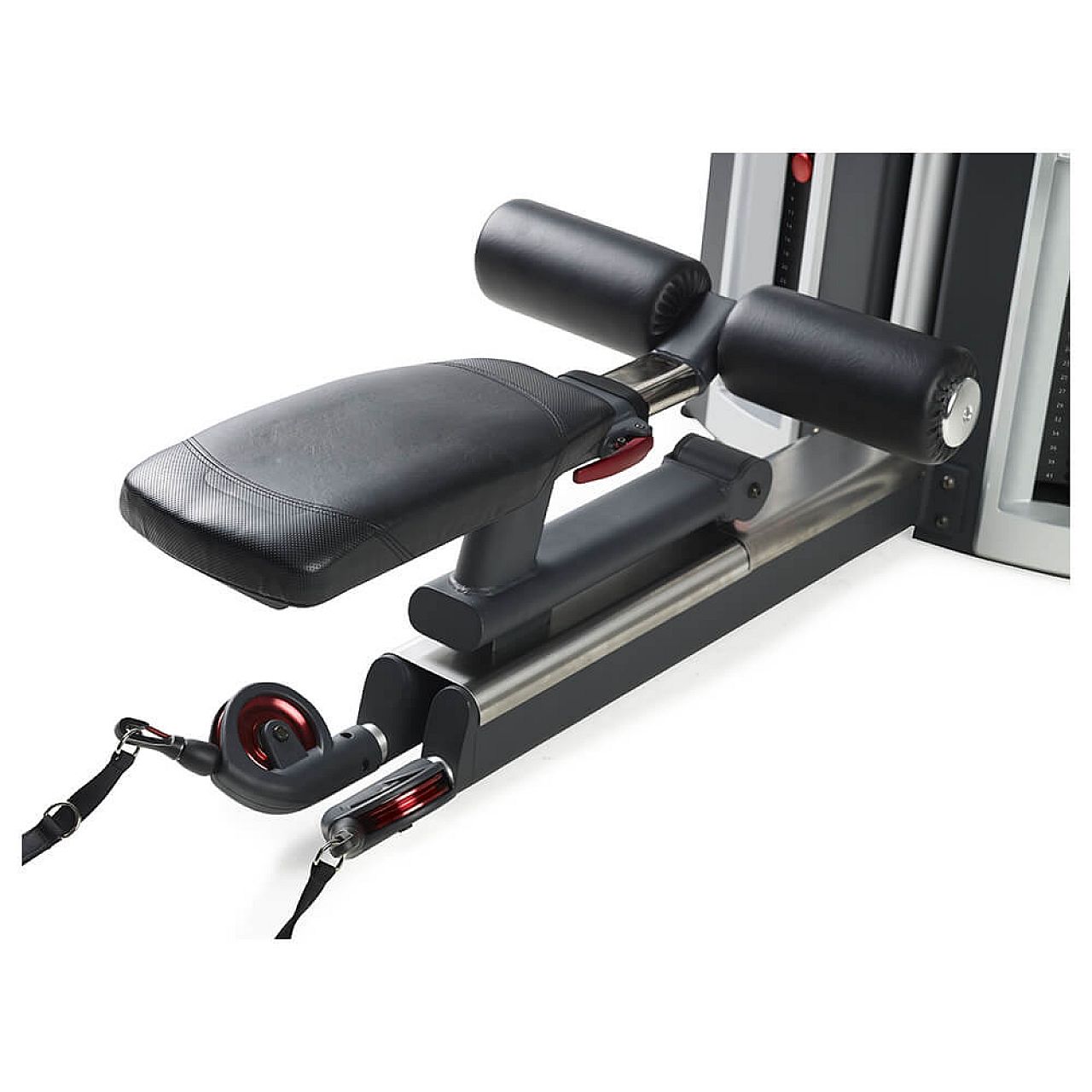 Контур стегна захищають регульовані по висоті колодки, шарнірне з'єднання і плавні поворотні руху роблять спектр тренування на багато ширше.
