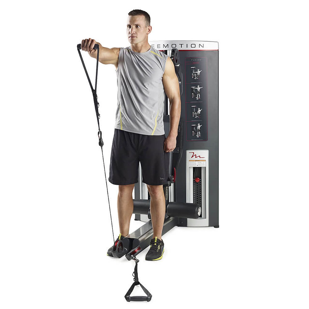 Залучає передпліччя, плечі, груди і шию в різних видах тяги, включаючи тягу, навантаження на руки і плечі, бічні і фронтальні підйоми і саггитальний руху.