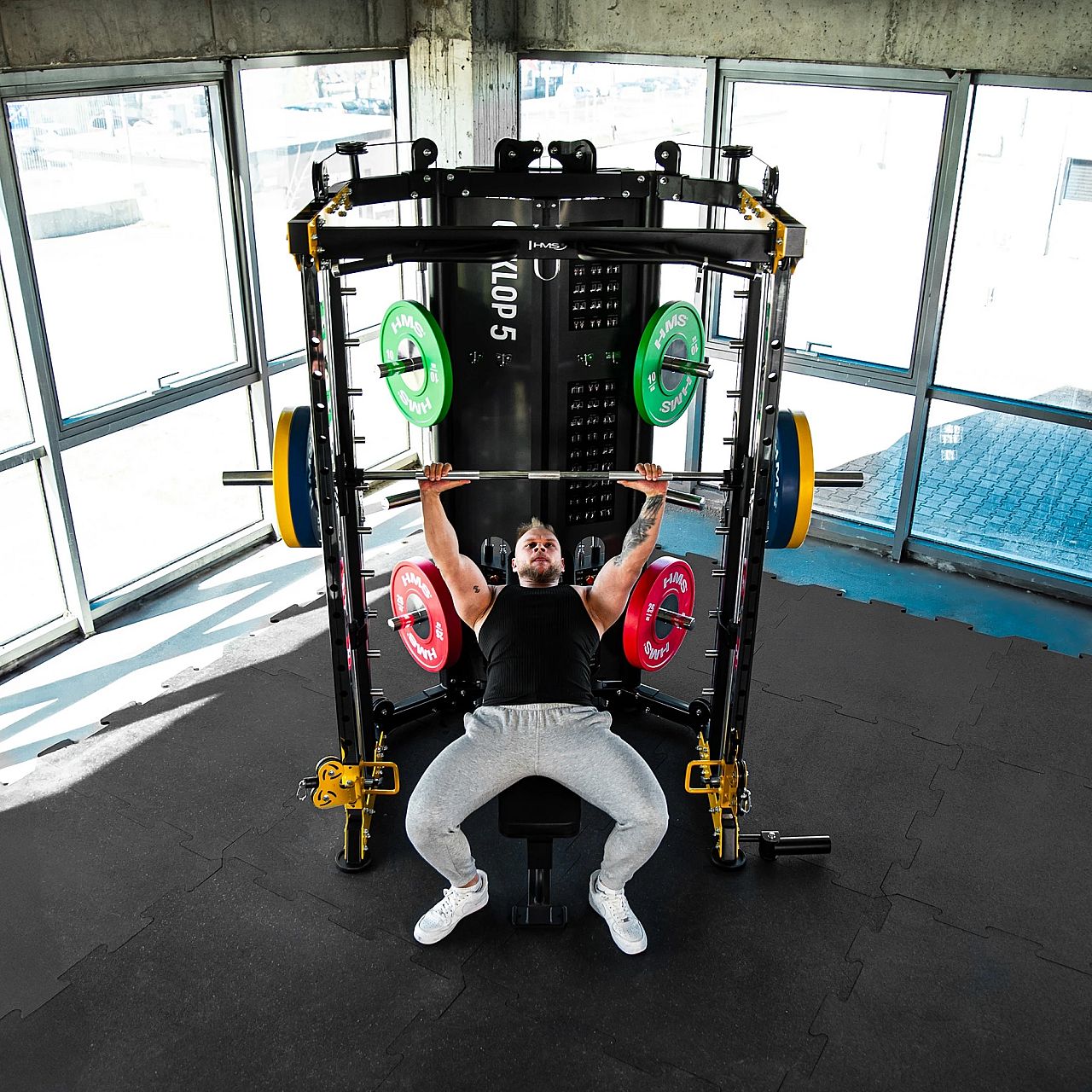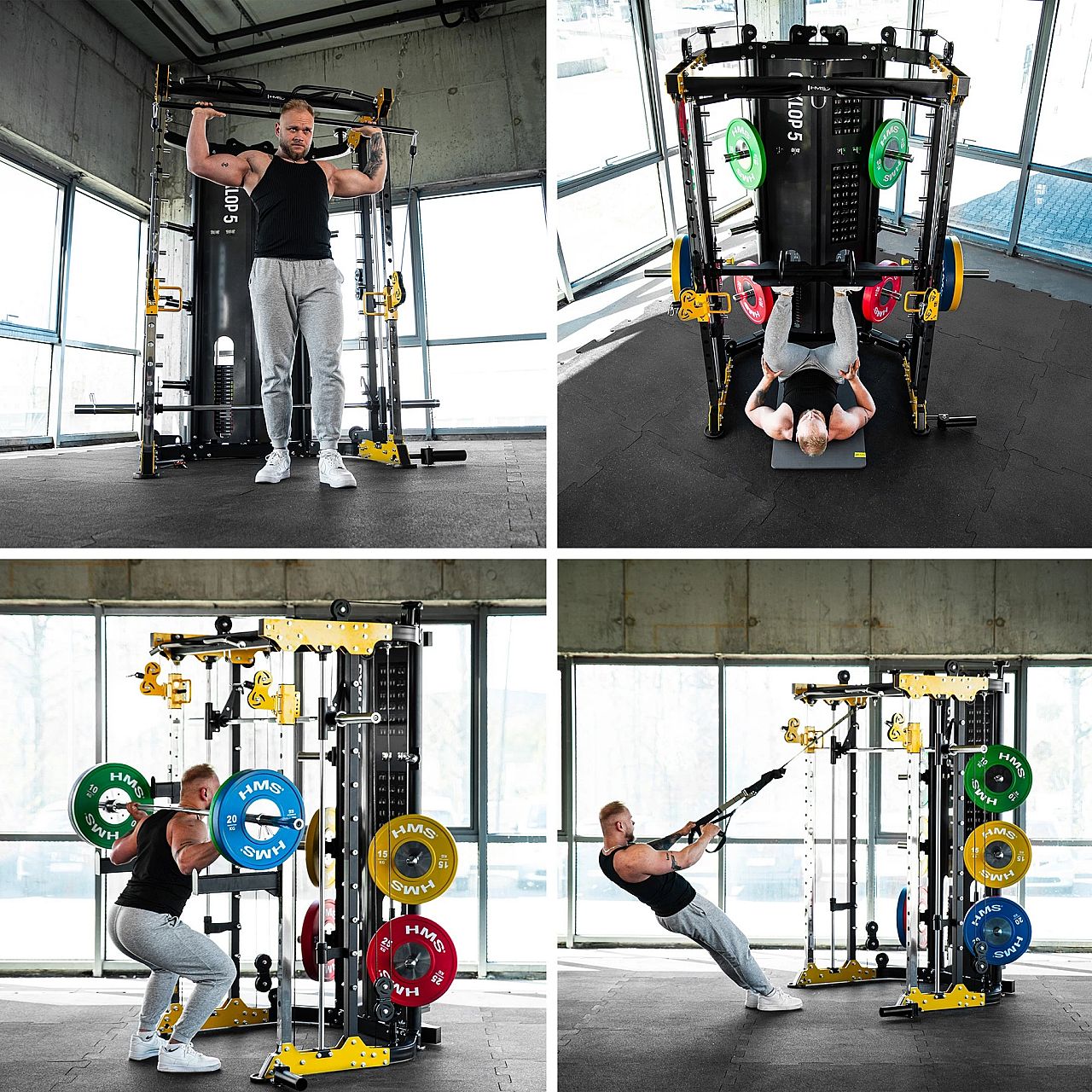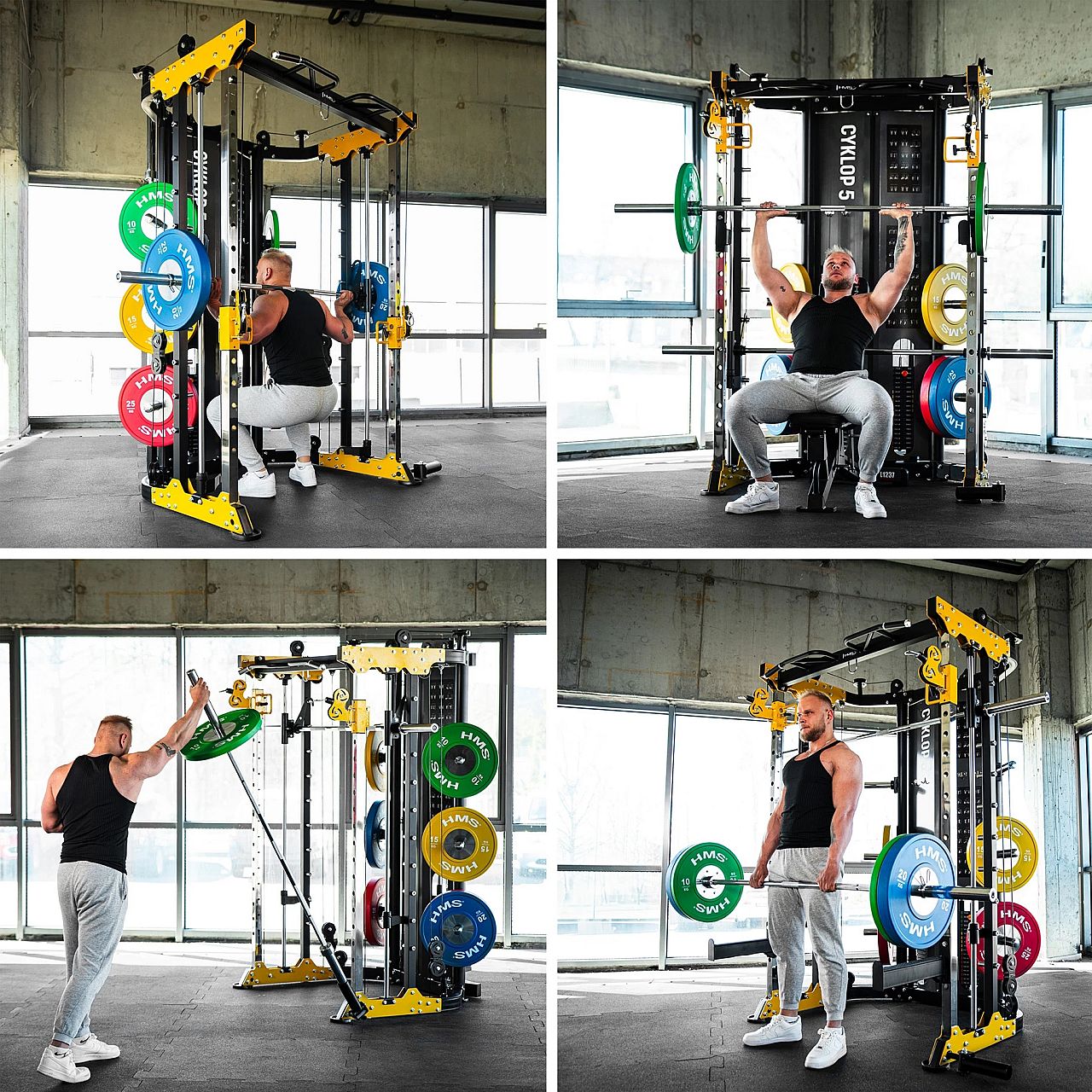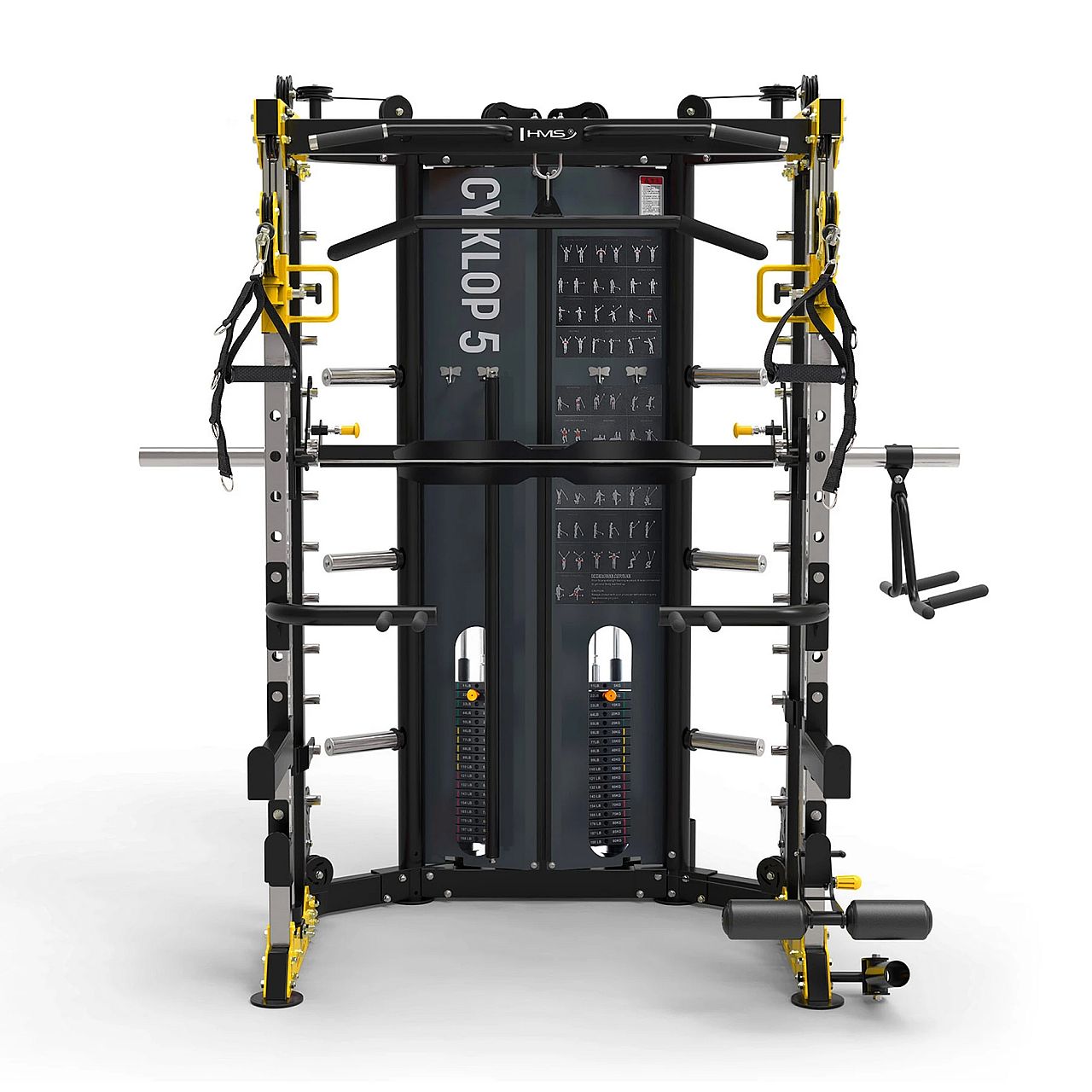 HMS Cyklop 5– це напівпрофесійна силова станція, яка поєднує у собі функціональність багатостанційного тренажера з максимальною безпекою та комфортом під час занять. Завдяки двом незалежним ваговим стекам по 90 кг кожен, тренажеру Сміта, численним ручкам і додатковому обладнанню, Cyklop 5 забезпечує повноцінне тренування всіх груп м'язів – від верхньої частини тіла до ніг.