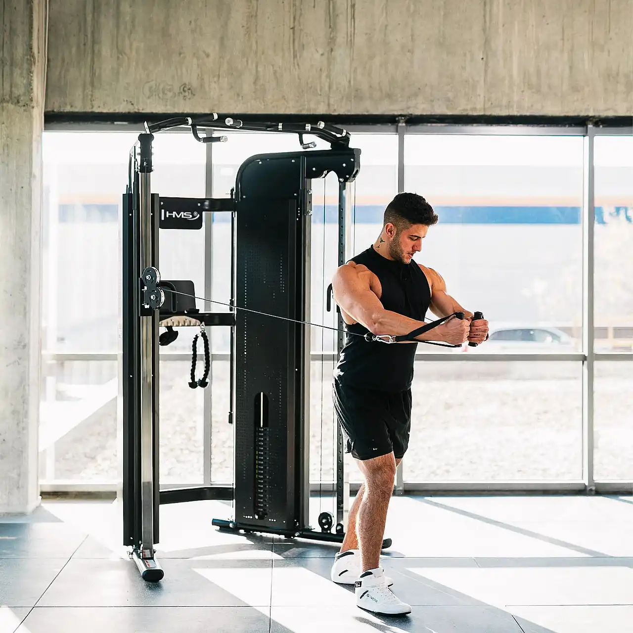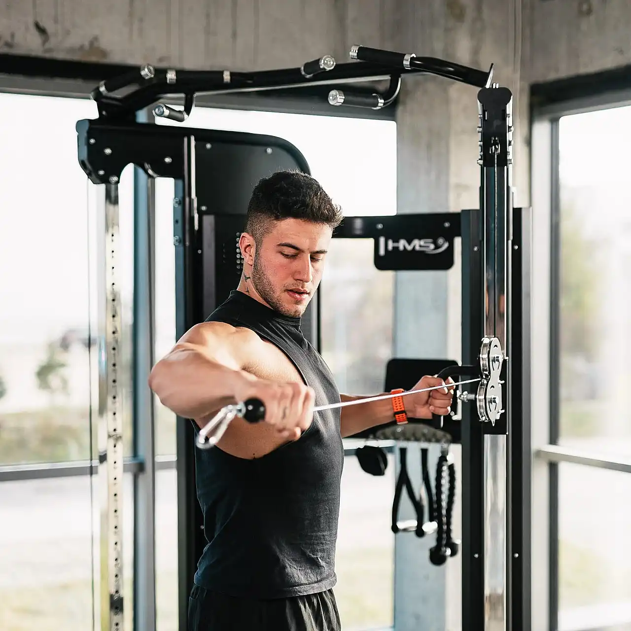 Пристрій дозволяє виконувати десятки вправ – від класичних силових рухів до функціональних та стабілізаційних тренувань. Плавне регулювання висоти блоку (система 180°) та чітка нумерація на сталевих напрямних дозволяють швидко налаштувати його відповідно до зросту та типу вправи. Це робить пристрій ідеальним для тренування всього тіла: спини, грудей, плечей, рук, ніг та м’язів кора.