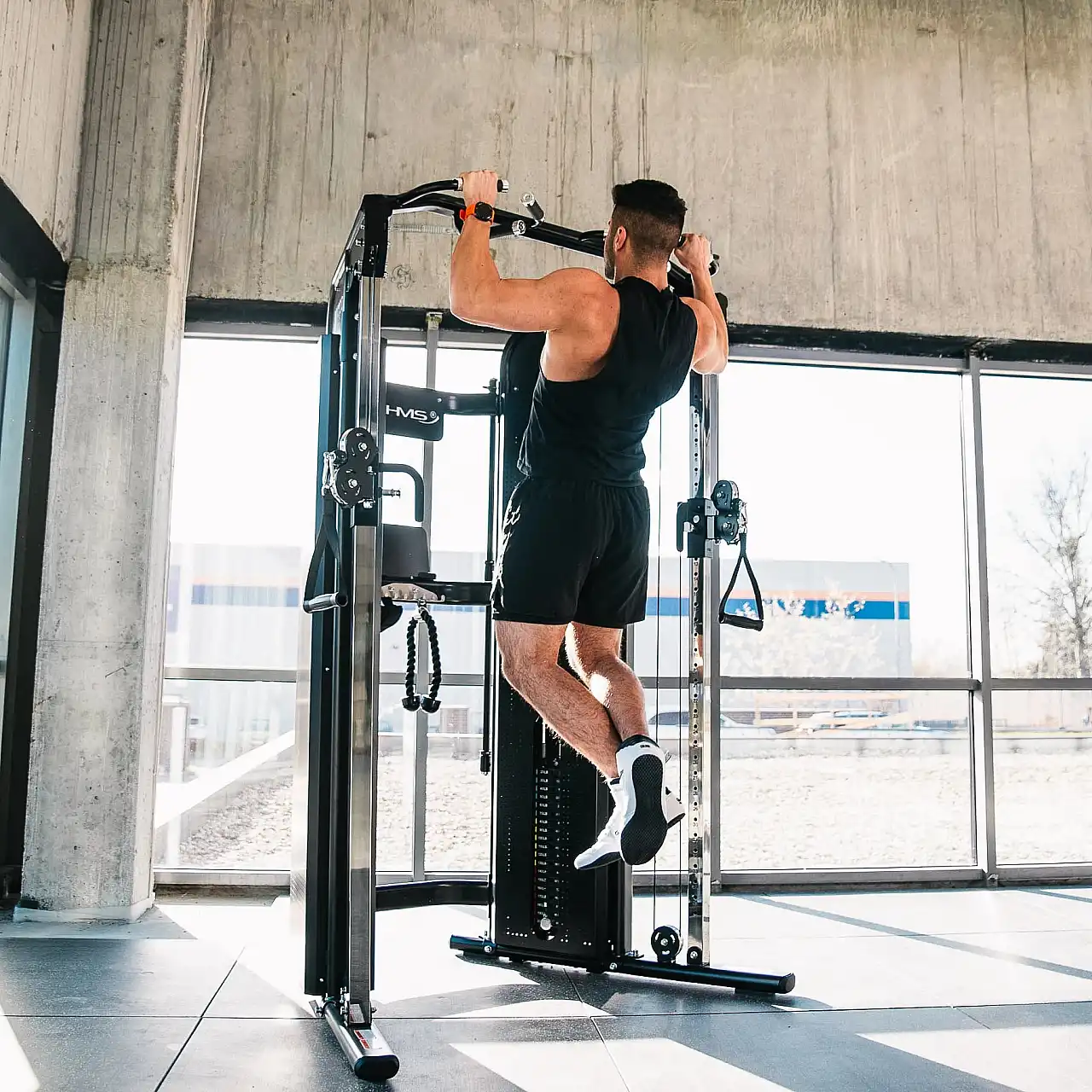 Вбудована гриф з кількома варіантами хвату пропонує кілька варіантів хвату: вузький, широкий, нейтральний, нижній/верхній, паралельний хват, змішаний хват та підтягування однією рукою. Це дозволяє ARES PRO замінити повний комплект аксесуарів та станцій, заощаджуючи місце у вашому клубі чи домашньому спортзалі.