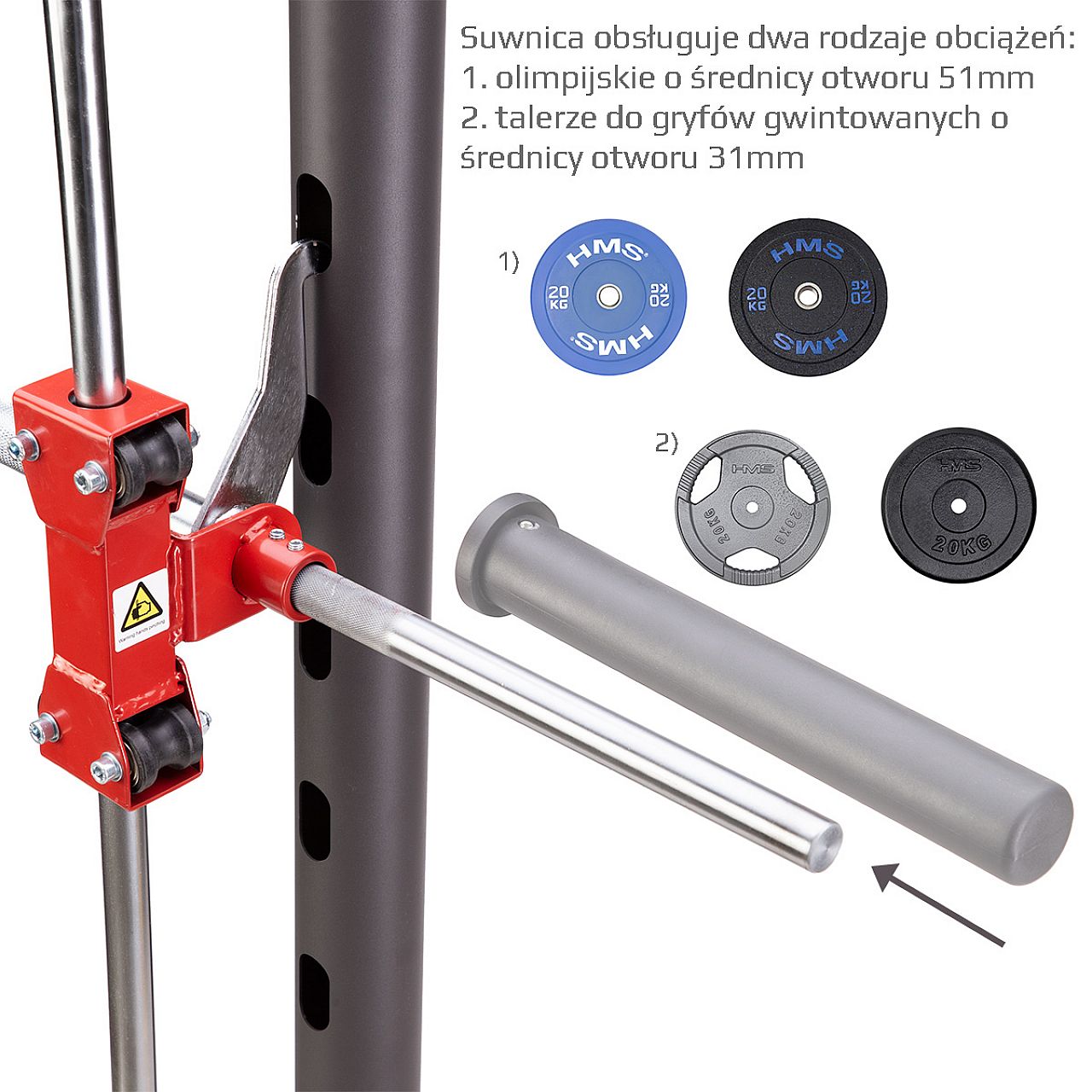 HMS X3 – це класичний тренажер Сміта, який пропонує розширені можливості для тренувань завдяки додатковим елементам. Це ідеальне рішення для домашнього тренажерного залу, що підійде як початківцям, так і досвідченим користувачам.