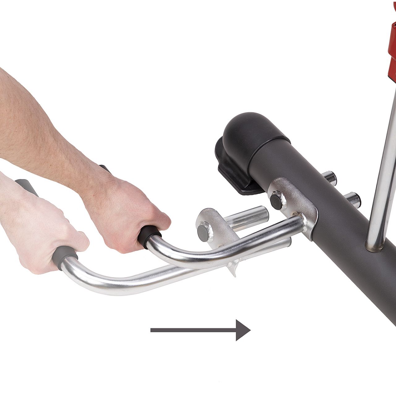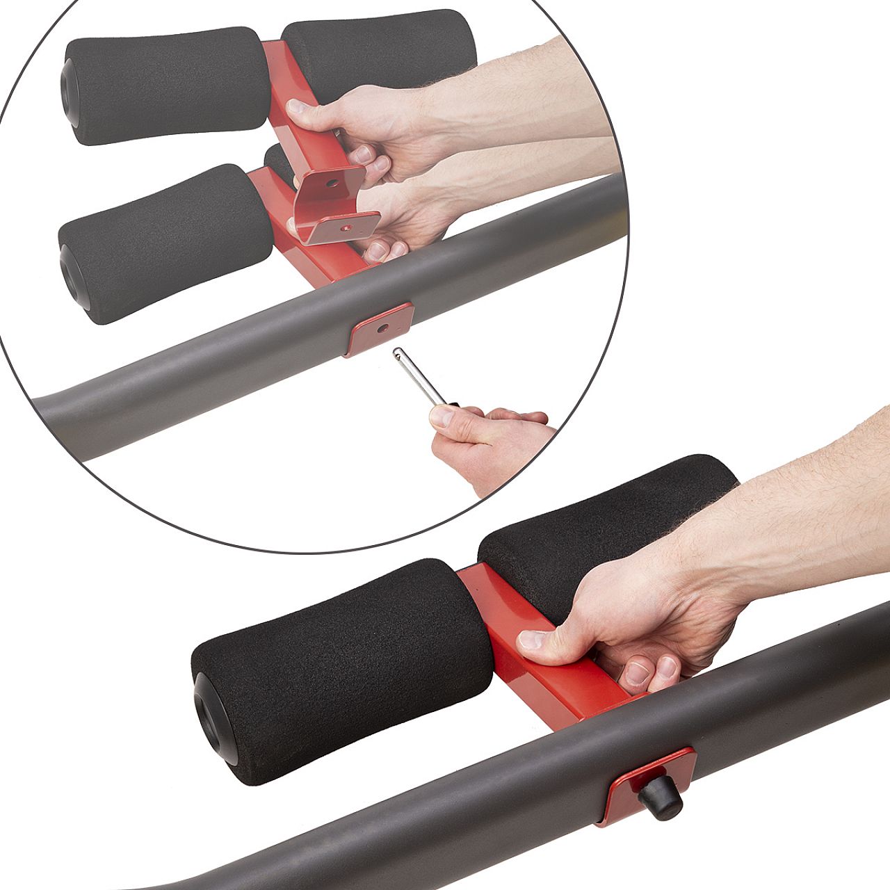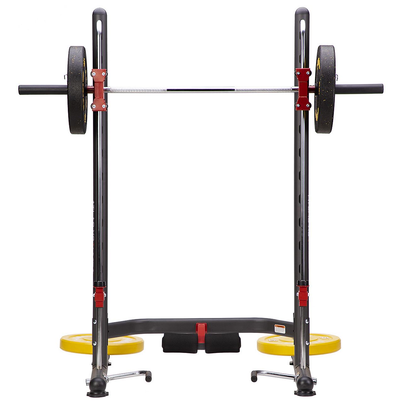 Гриф тренажера має рифлену поверхню для комфортного захоплення, а система фіксації забезпечує стабільність ваг під час виконання вправ. Ковзний механізм працює на лінійних підшипниках, що гарантує плавний рух без ривків.