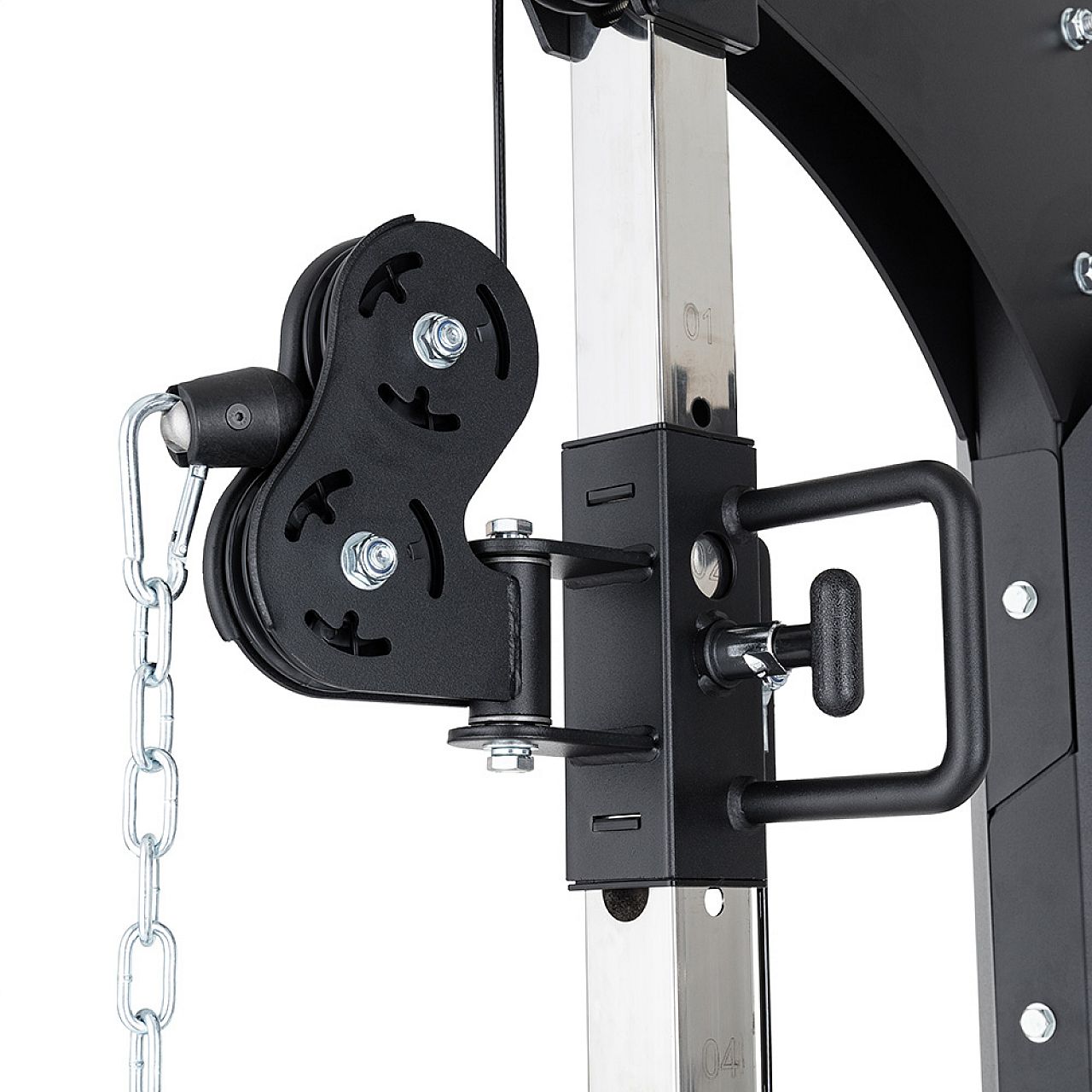 Багатоцільова планка для підтягувань з обох боків стійки, простір для зберігання вагових пластин і подовжувачів, а також червоні рукоятки для лазіння — це вишенька на торті. Жоден сучасний тренажерний зал не може обійтися без стійки Power Rack inSPORTline Cable Column CC650 Double !