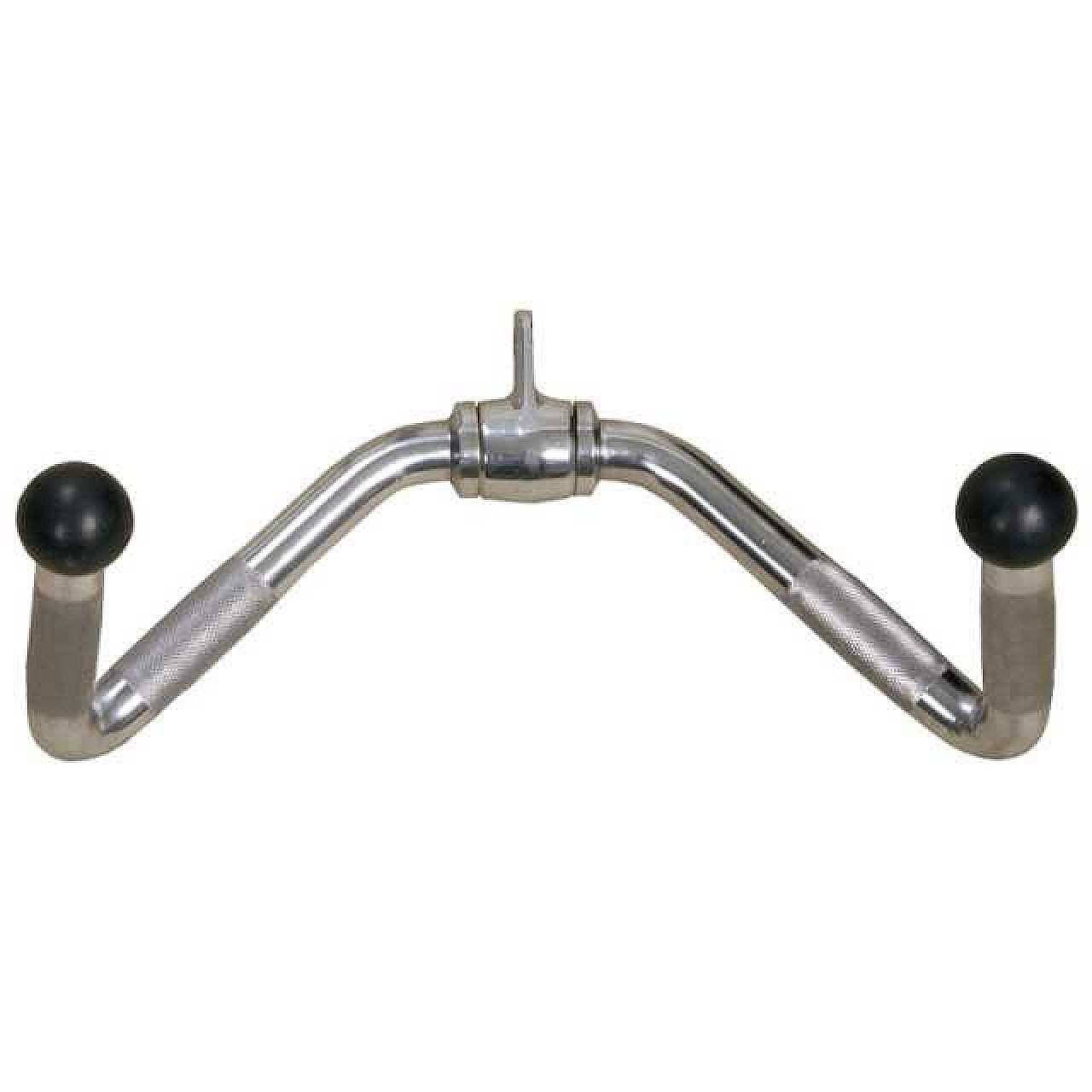 Ручка для тяги знизу InterAtletika Е5-10 багатофункціональна, обертається застосовується як під час виконання силових вправ, так і при заняттях фітнесом, або фізкультурою. Вона є багатофункціональною і має можливість обертання. Форма ручки вигнута, а на кінцях розміщені спеціальні фіксатори, щоб не зсковзували руки. Крім того, на самій конструкції в двох місцях присутні насічки для більш зручного хвата. Ручка зроблена з високоякісної сталі.