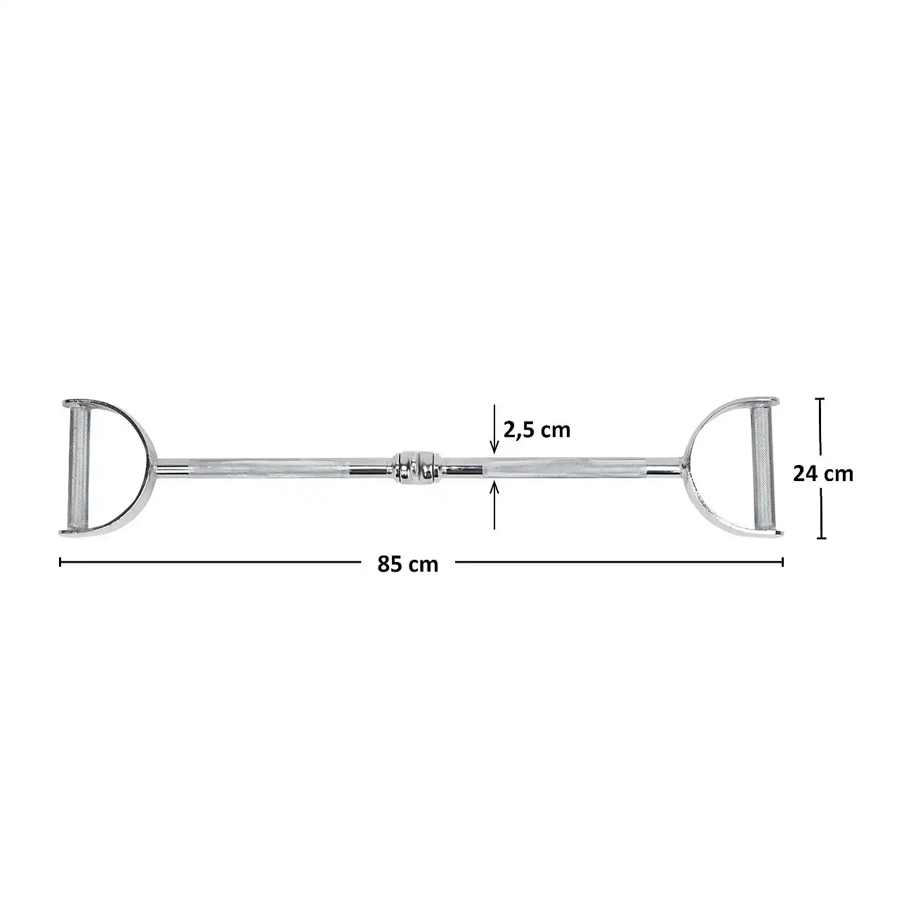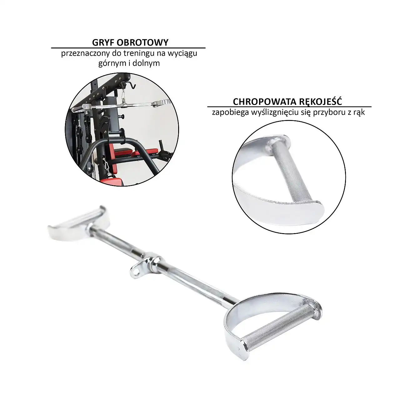 Його довжина гарантує багато можливостей захоплення, від дуже вузького до дуже широкого. Завдяки цьому під час занять штанга гарантуватиме розвиток м'язів при різній довжині їх кріплень. Крайні рукоятки встановлені в нейтральному хваті, завдяки чому це дозволить задіяти альтернативні м'язові кріплення під час виконання вправи. Ручка виготовлена з високоякісної сталі, що дозволяє тренуватися зі значним навантаженням. Крім того, шорстка ручка не дає посуду вислизати з рук, при цьому вимагає більш міцного захоплення, що також дозволяє розвивати м'язи передпліччя.
