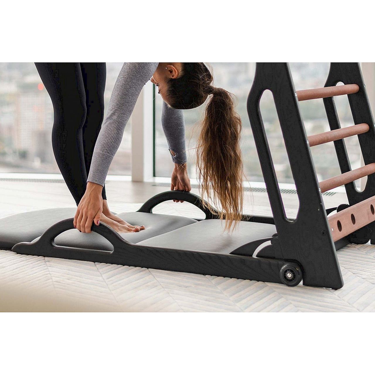 Тренувальна драбина NOHRD Elasko була виготовлена вручну на німецькій фабриці NOHRD з високоякісної масивної деревини, що забезпечує приємні відчуття при тренуванні, а м'який коврик із синтетичної або натуральної шкіри, залежно від обраної версії пристрою, забезпечує комфортні тренування та розтяжка.