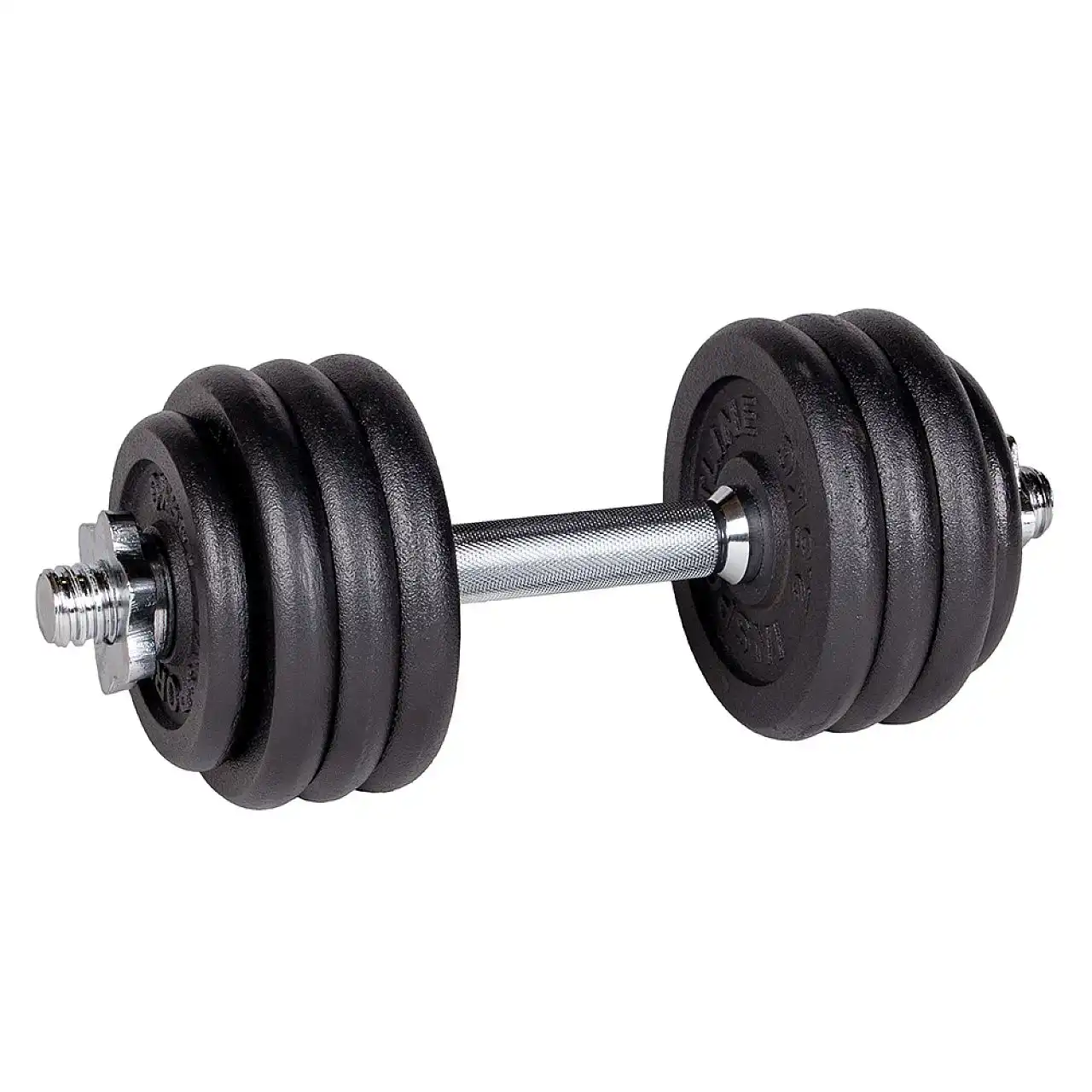 Одноручний набір гантелей inSPORTline Castblack 2 x 20 кг, що складається з двох коротких стрижнів з різьбою та набору чавунних вагових пластин, дозволяє ефективно зміцнити верхню частину тіла, особливо м’язи рук. Обидві штанги мають довжину 40 см і, завантажені вагами, що входять у комплект, дозволяють тонізувати м’язи на свій смак – і за зниженою ціною!