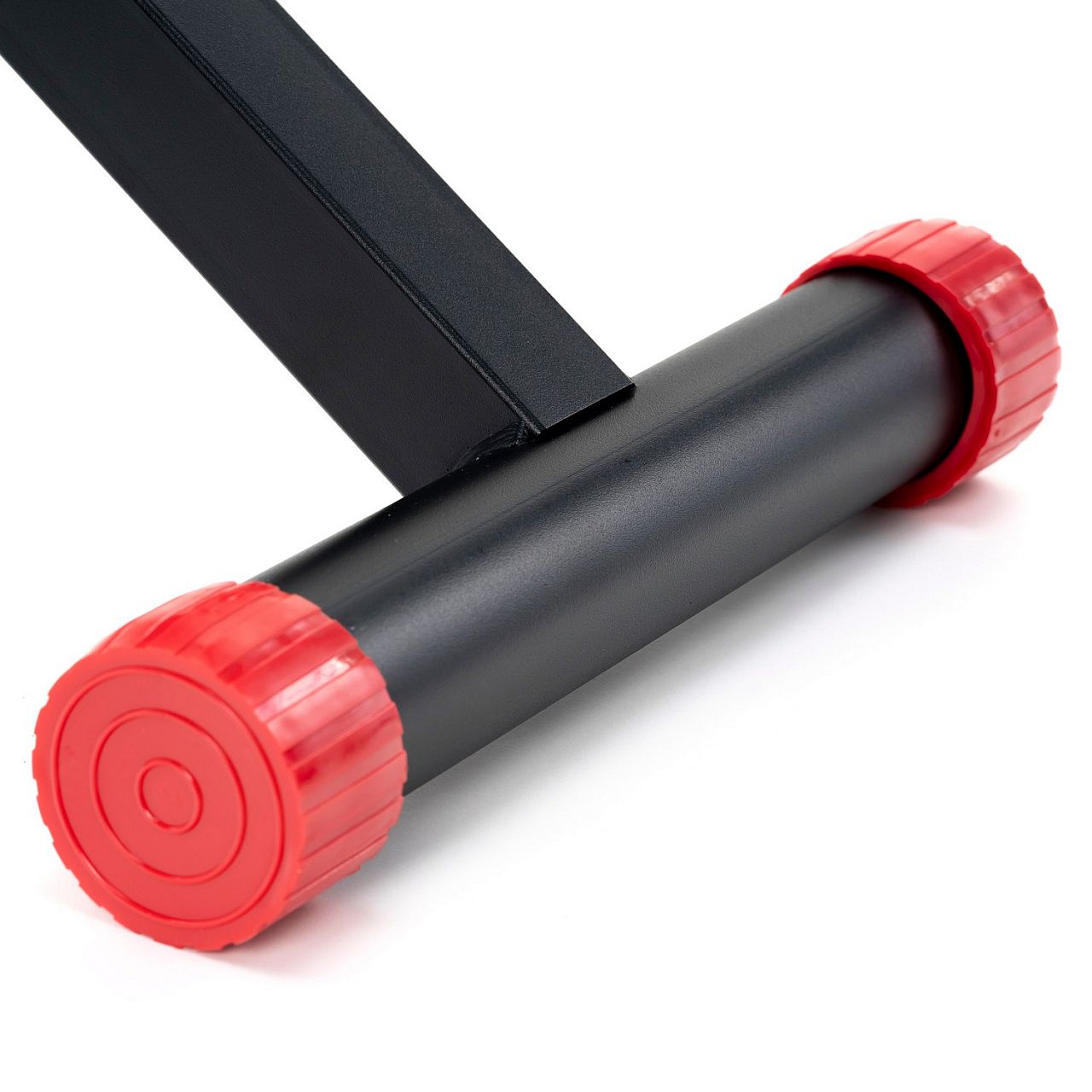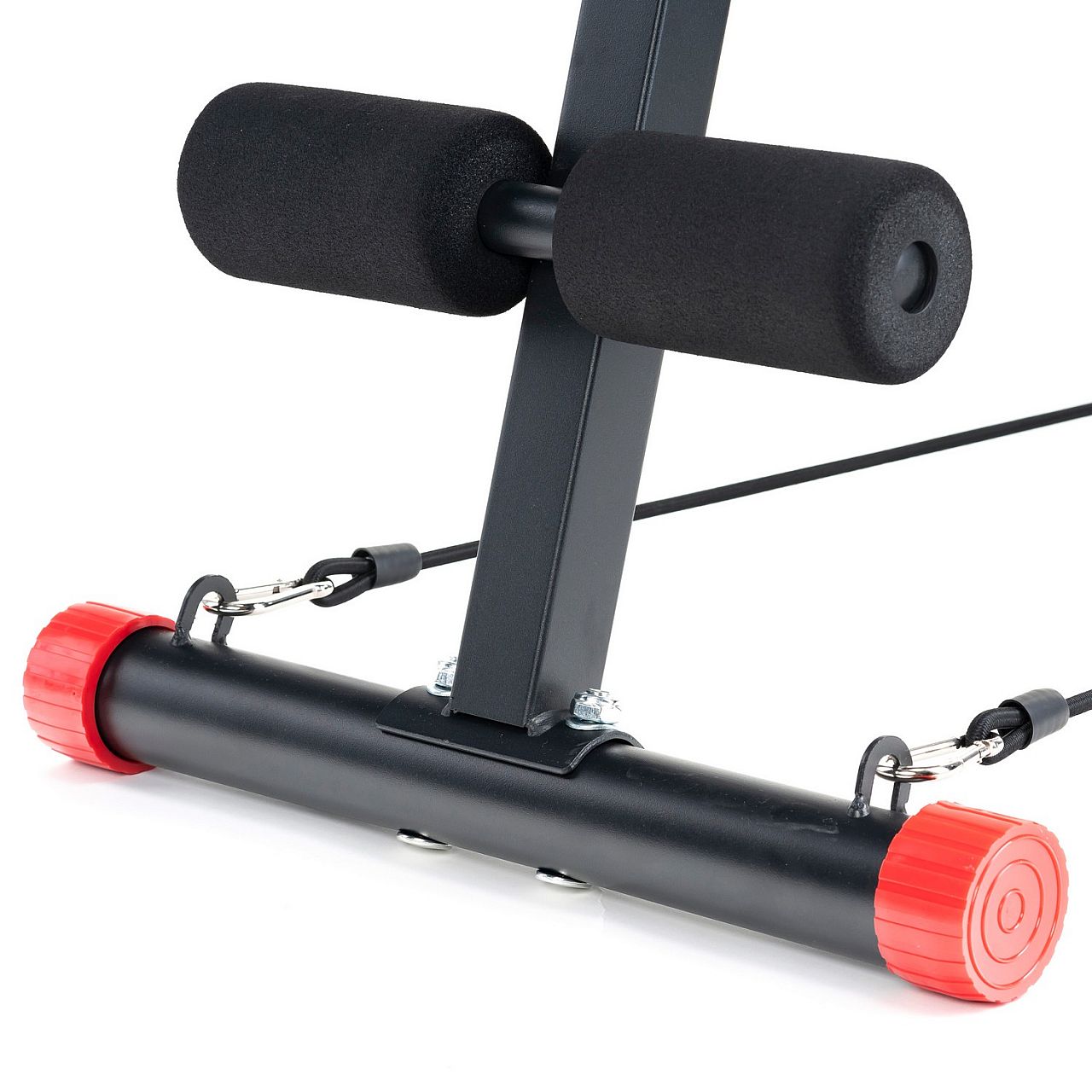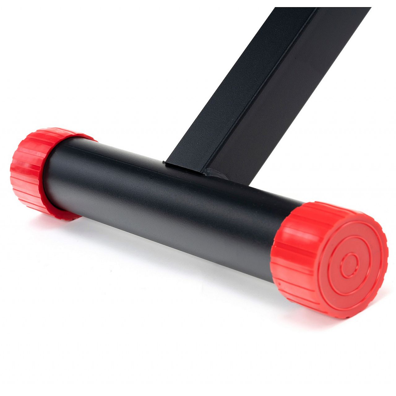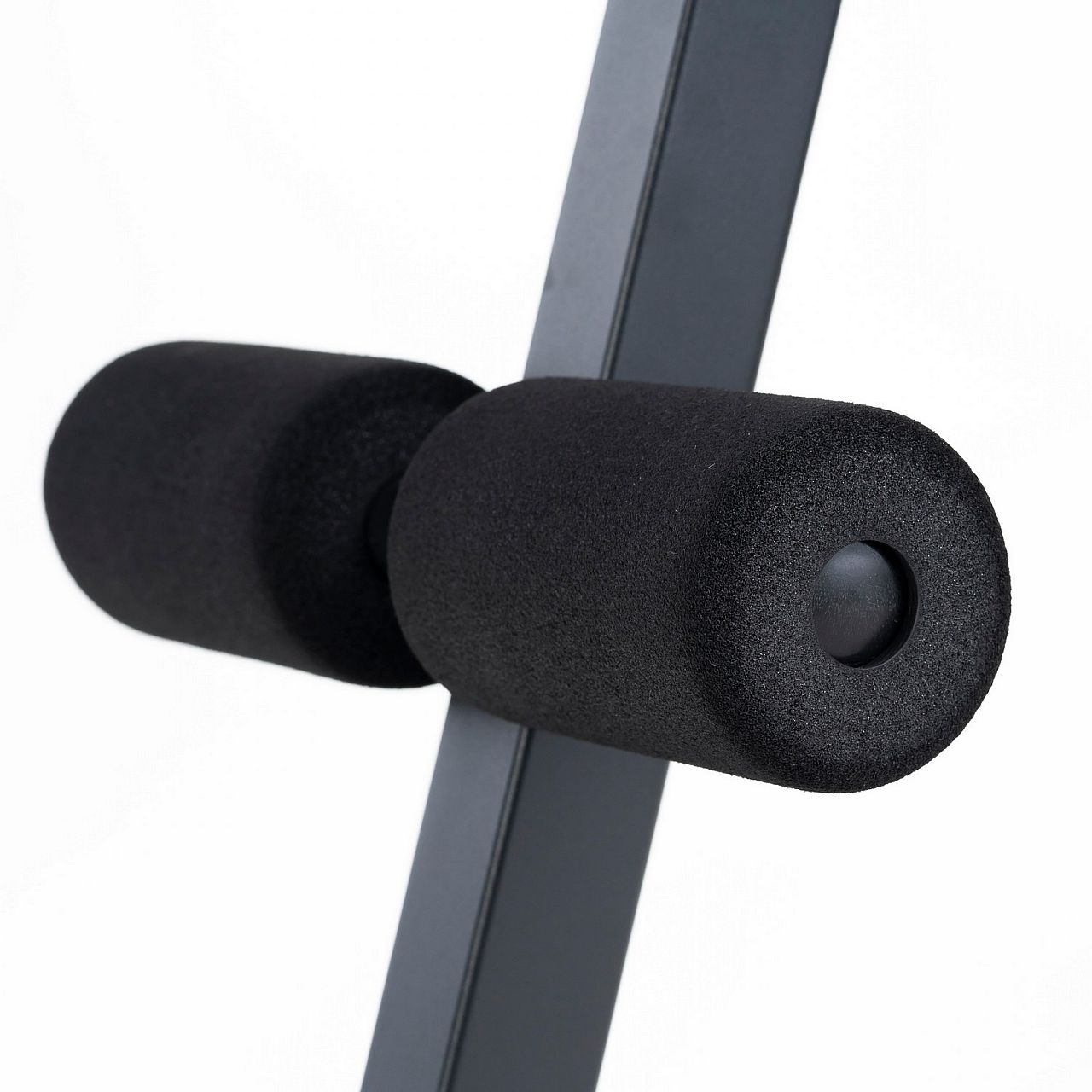 Завдяки надійним фіксаторам та широкій основі, тренування на лавці не викликає дискомфорту навіть при роботі з вагою.