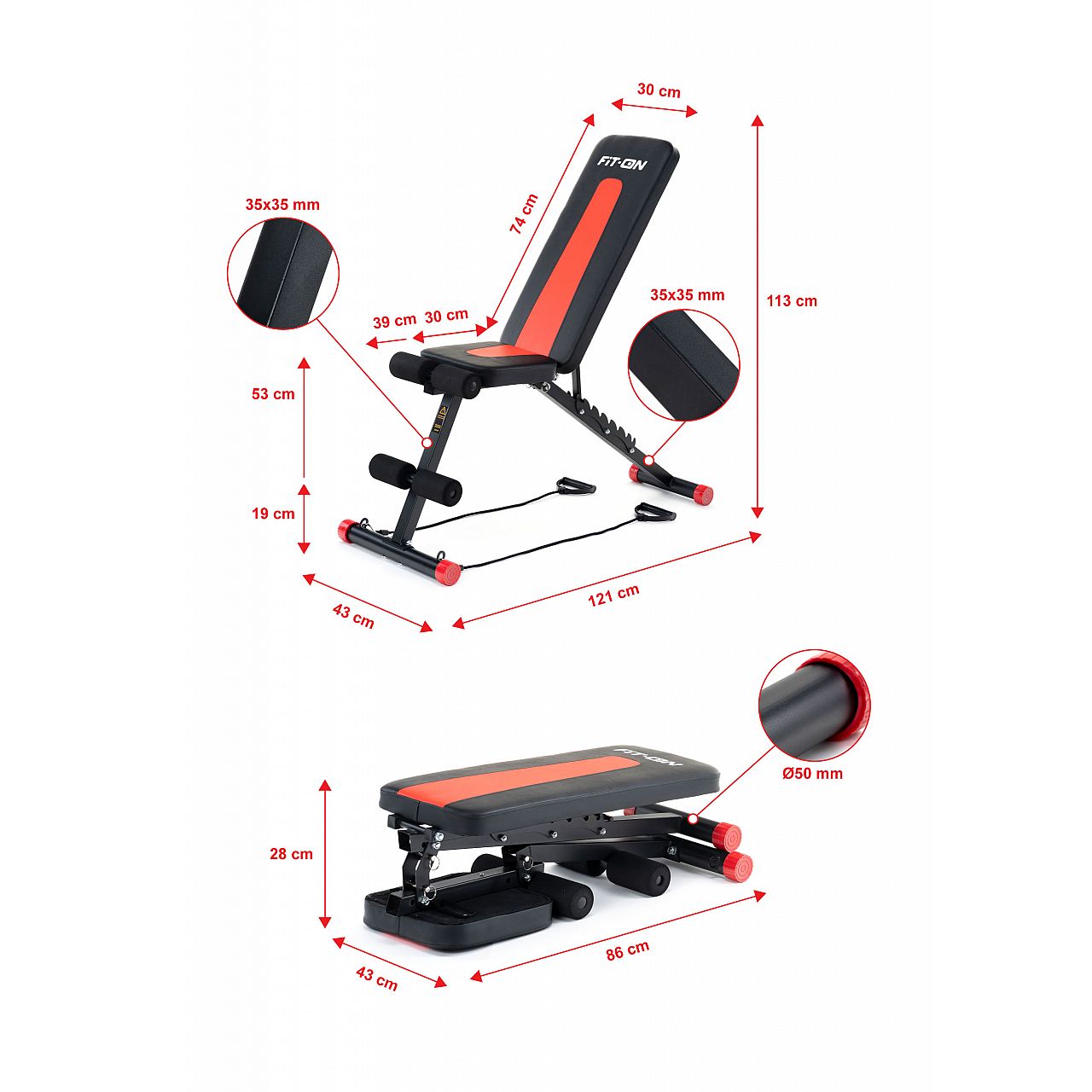 Fit‑On FN‑S201 — універсальна регульована лавка, яка дозволяє виконувати повноцінні домашні силові тренування без потреби у великій кількості обладнання. Вона поєднує в собі зручну основу для жиму, спинку з кутом нахилу, комфортне сидіння, а також вбудовані еспандери, які відкривають додаткові можливості для вправ на верхню частину тіла.