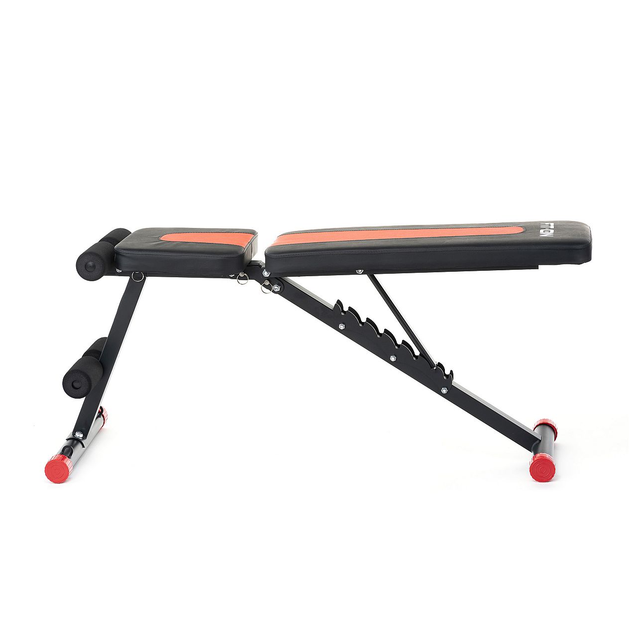 Спинка лавки регулюється у 7 положеннях, зокрема і в негативному куті, що дозволяє виконувати жим під нахилом, вправи на прес і багато іншого. Це дає змогу працювати з різними групами м’язів: груди, плечі, спина, руки.