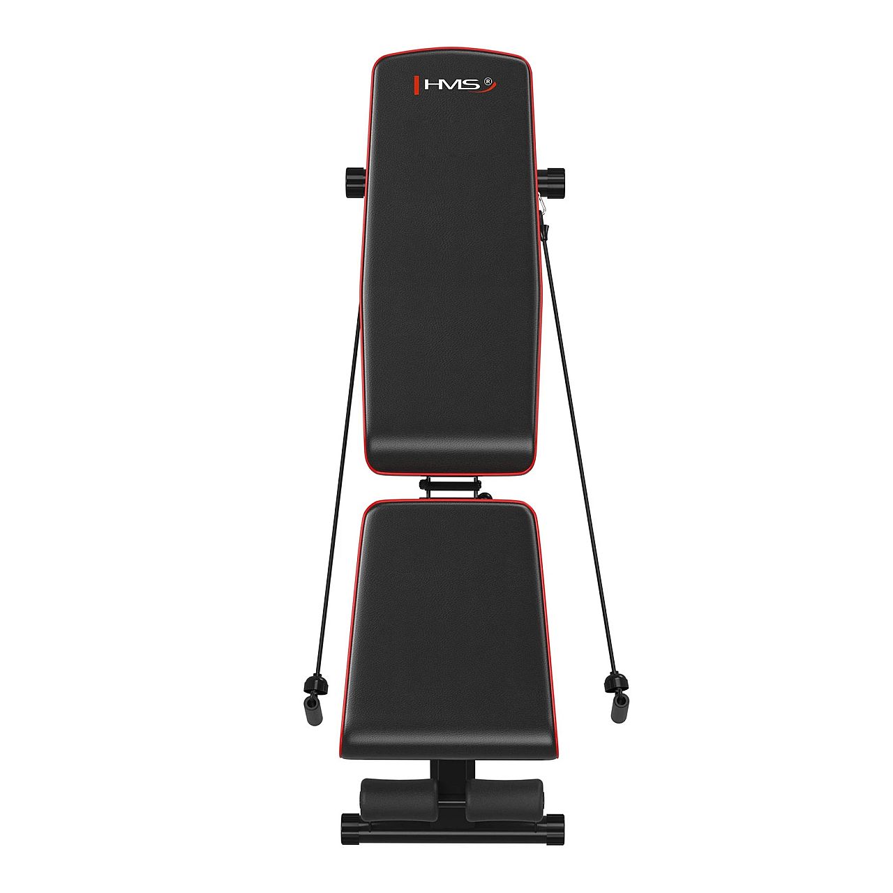 Складна лава HMS L1217пропонує 6-рівневу регуляцію спинки (від 102° до 195°) та 3 рівні регулювання сидіння, що дозволяє виконувати різноманітні вправи у вертикальному, похилому та горизонтальному положеннях.