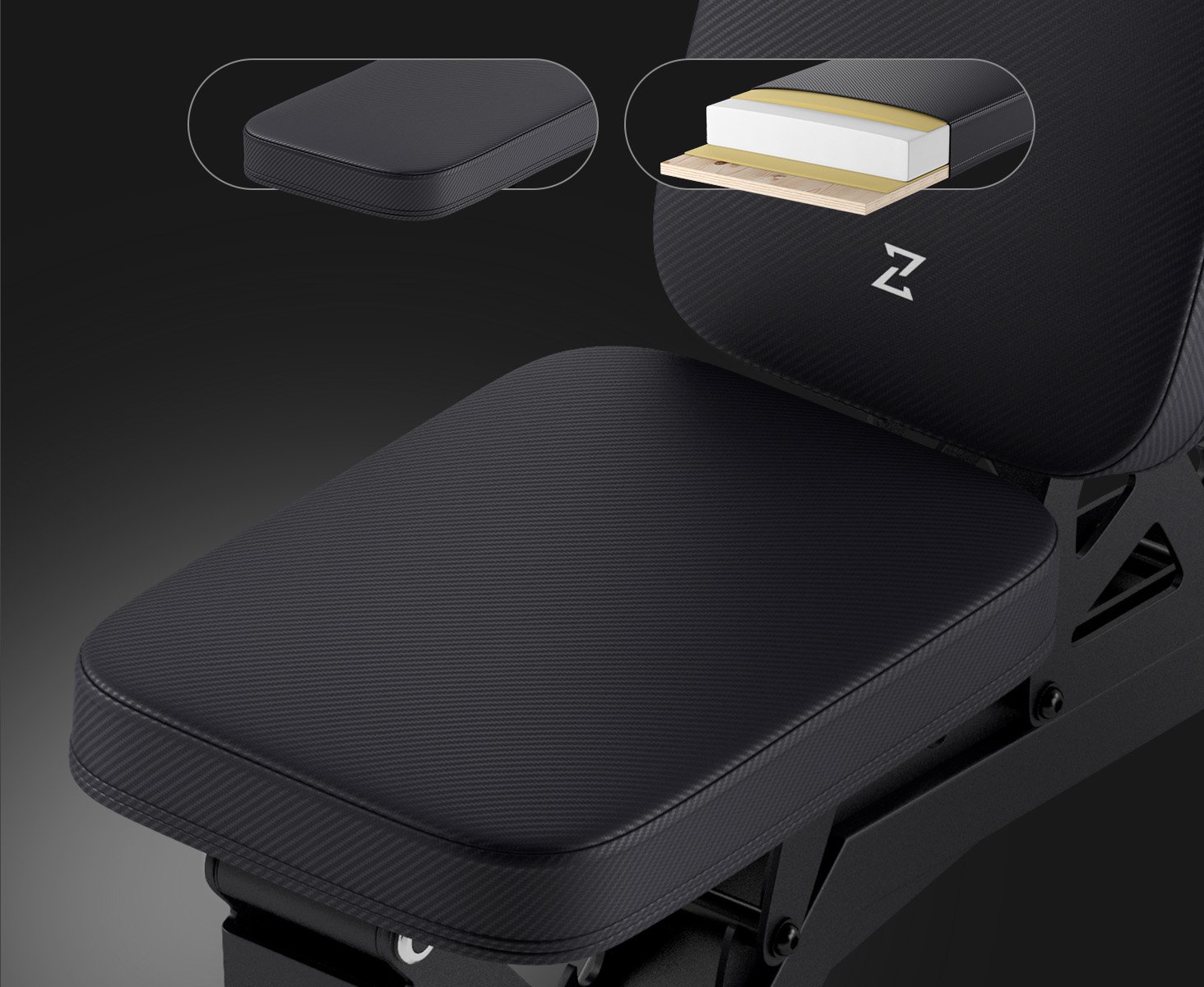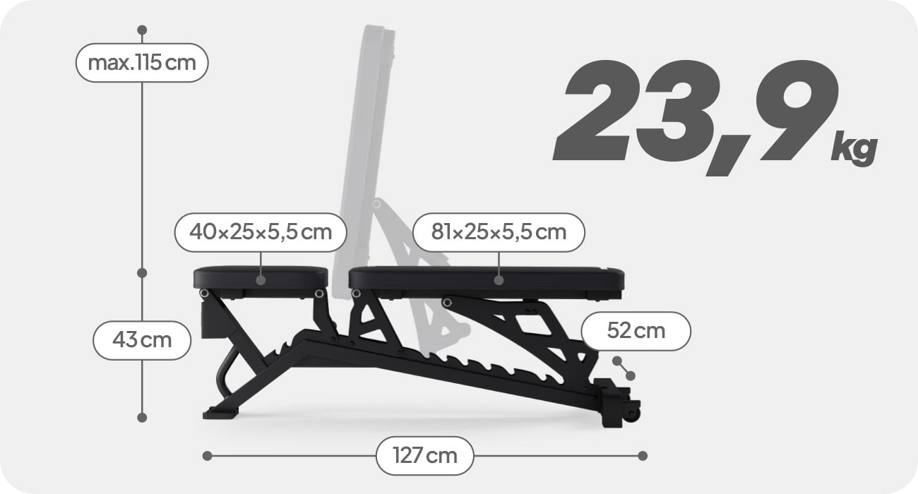 Багатошарова конструкція сидіння та спинки товщиною 50 мм на дерев'яній дошці забезпечує міцність та стійкість до деформації. Високоякісне покриття з ПВХ шкіри підвищує його довговічність та полегшує очищення. Все це робить кожне тренування не тільки ефективним, але й приємним, що має вирішальне значення для підтримки мотивації та послідовності тренувань.