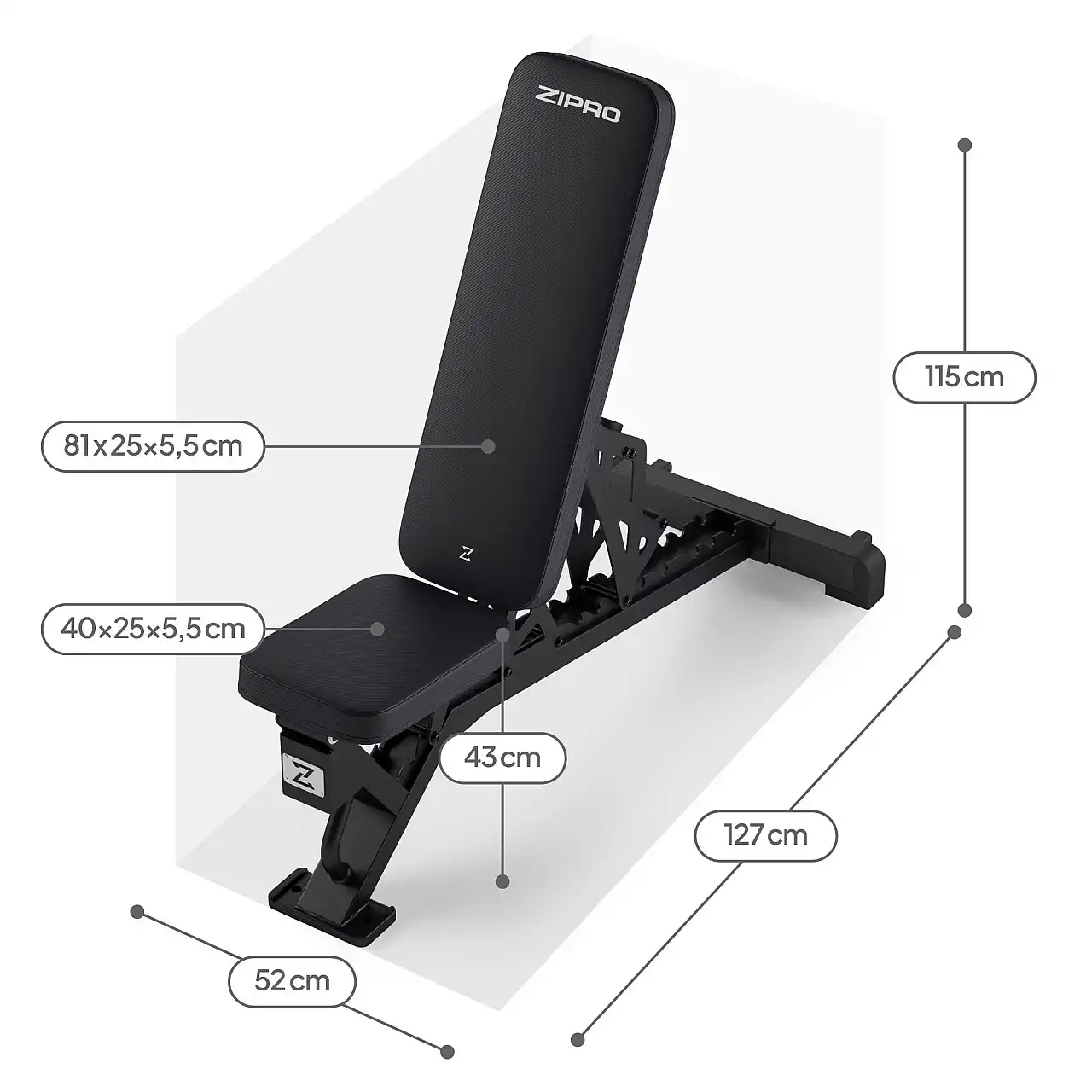 ZIPRO Nocardio важить 23,9 кг – вага, яка забезпечує стабільність, міцність та довговічність. Його компактний дизайн (52 x 127 x 43 см) займає мінімум місця, забезпечуючи безпечну підтримку навіть під час інтенсивних тренувань.