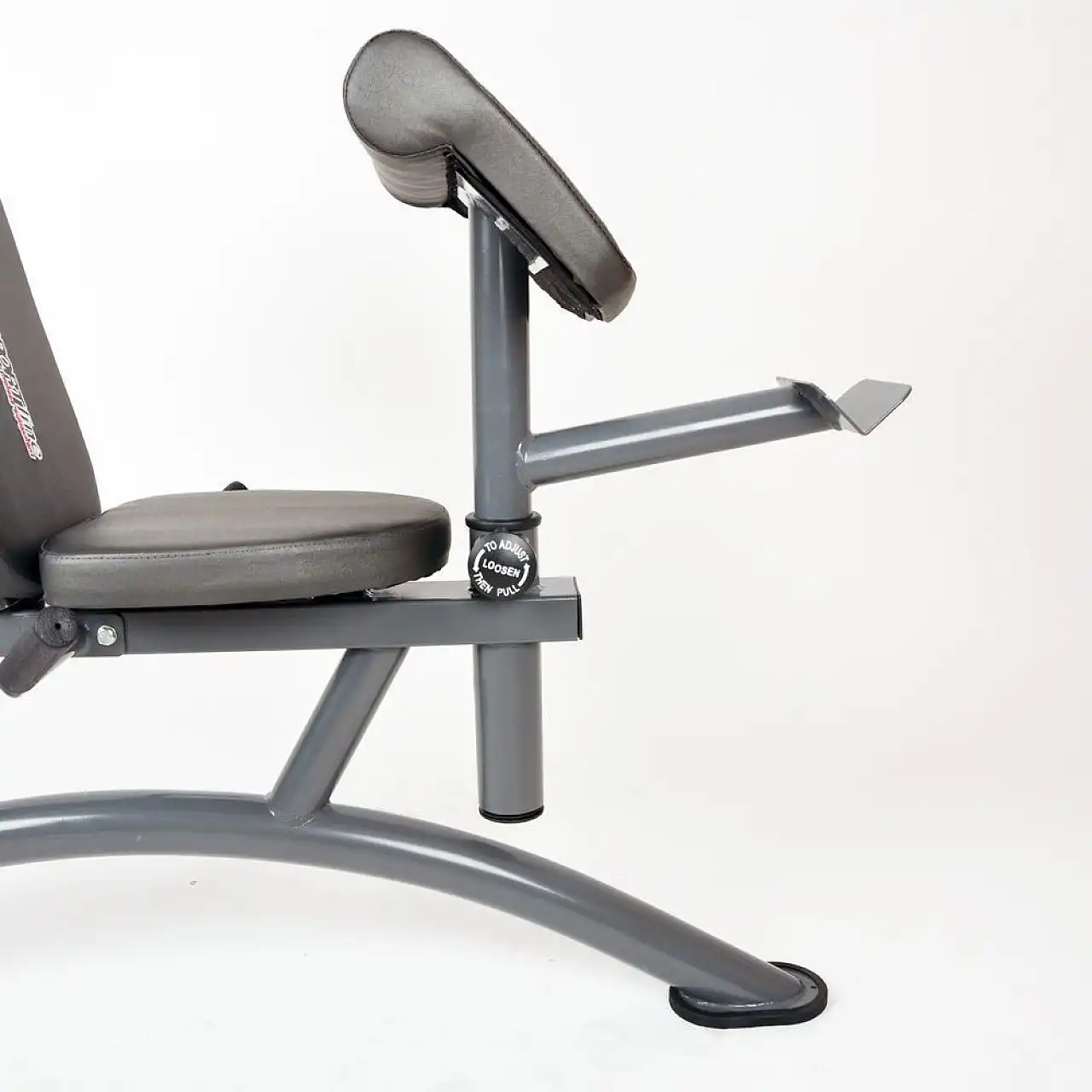 Регульована шкіра SPORTline Hero AB70 призначена для зміцнення рук та ніг. Його можна використовувати для заповнення всіх основних вправ із гантелями. Міцний сталевий каркас покритий хромом, що забезпечує підвищену стійкість до поту, поту та тарапіну. Лавка пропонує ролик для тренування мишок ніг та подовжувач, що обожнює поповнювальну вантаж діаметром 25 мм. Механізм підтримує ніжку верхніх частин тіла (він є частиною пакета). Регульована лямка inSPORTline Hero AB70 також має набивку, що налаштовується, що забезпечує максимальний комфорт у спині при тренуванні, і преглируемую на сім рівнів при ній, покриту незламним матеріалом для повного стояння і безпеки. Всі ці особливості роблять регульовану лавку в SPORTline Hero AB70 - ідеальне доповнення до спортивного жалю.