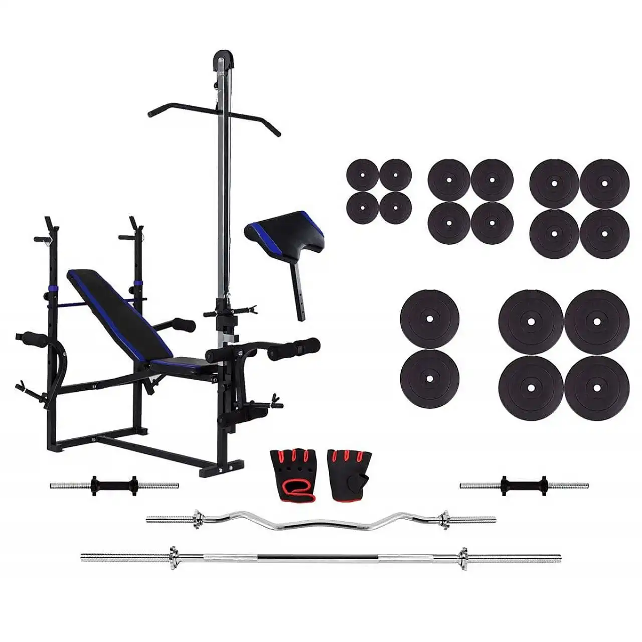 Набір містить лаву від Fit-On (парта+тяга) + дуже якісні диски від Iron body, вкриті пластиком, а також кілька видів грифів. Ці диски відрізняються не лише солідним виконанням, але також естетичним виглядом та максимальним ступенем функціональності. Завдяки цьому вправи з ними зручні та безпечні.
