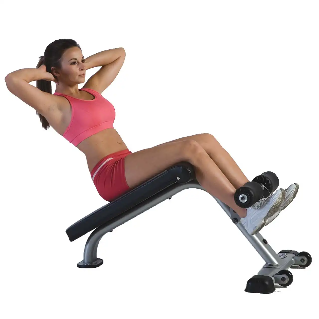 | Додаткові характеристики | Постійний кут нахилу лави підходить для тренування преса та інших вправ; Зручні та м'які фіксатори для ніг; Вбудовані колеса полегшують переміщення лави |