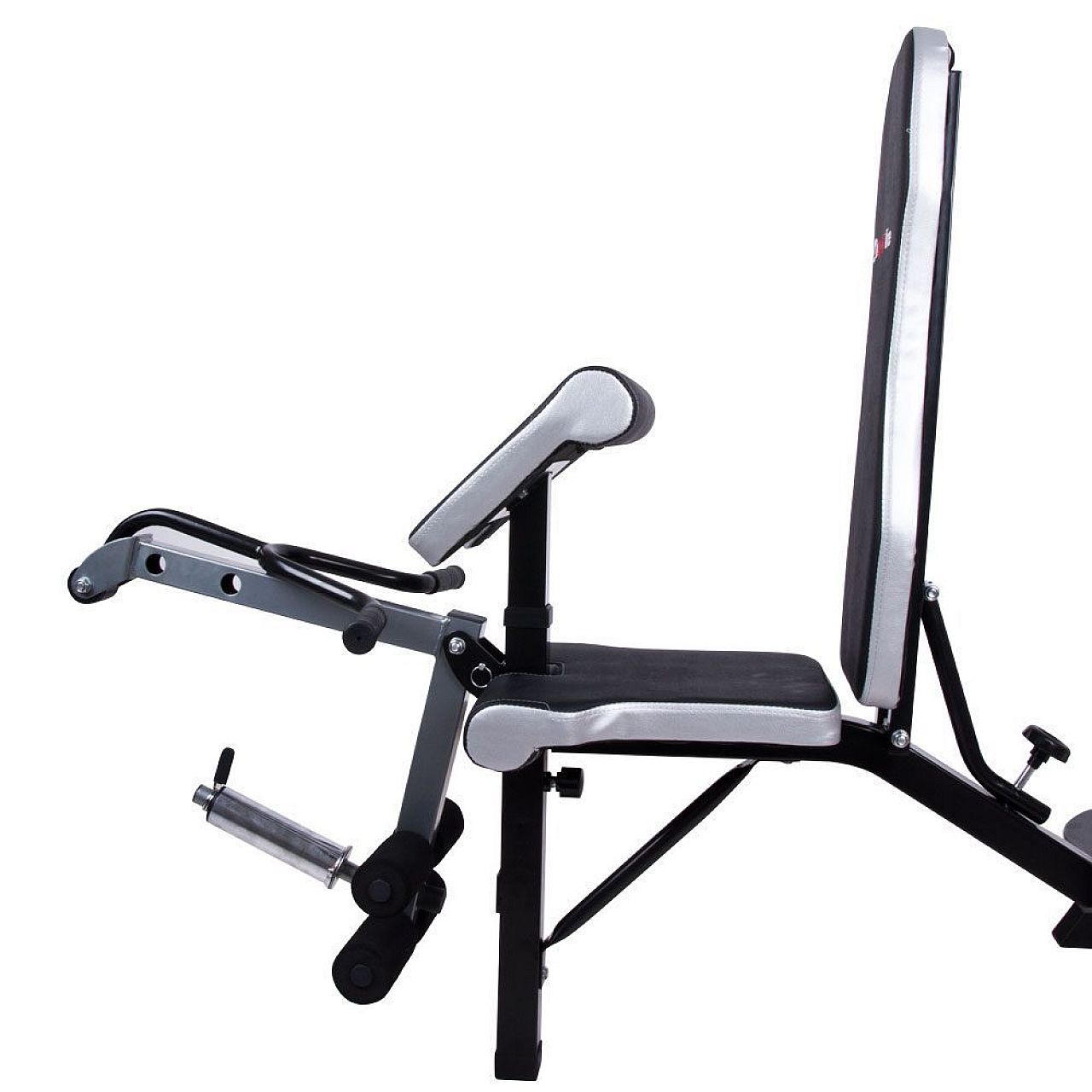 Комплект, що складається з лави, парти скотта, набору млинців та штанги.